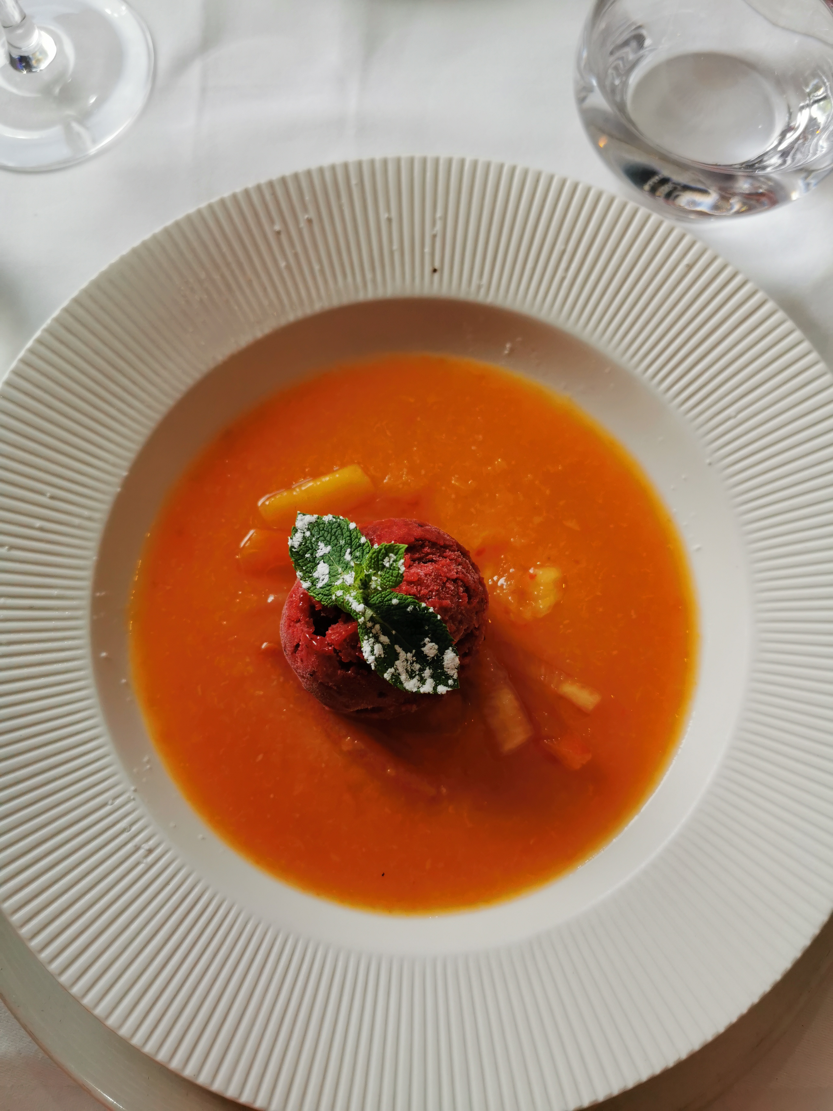 Cuisine raffinée, assiettes soignées, personnel professionnel, discret et très agréable