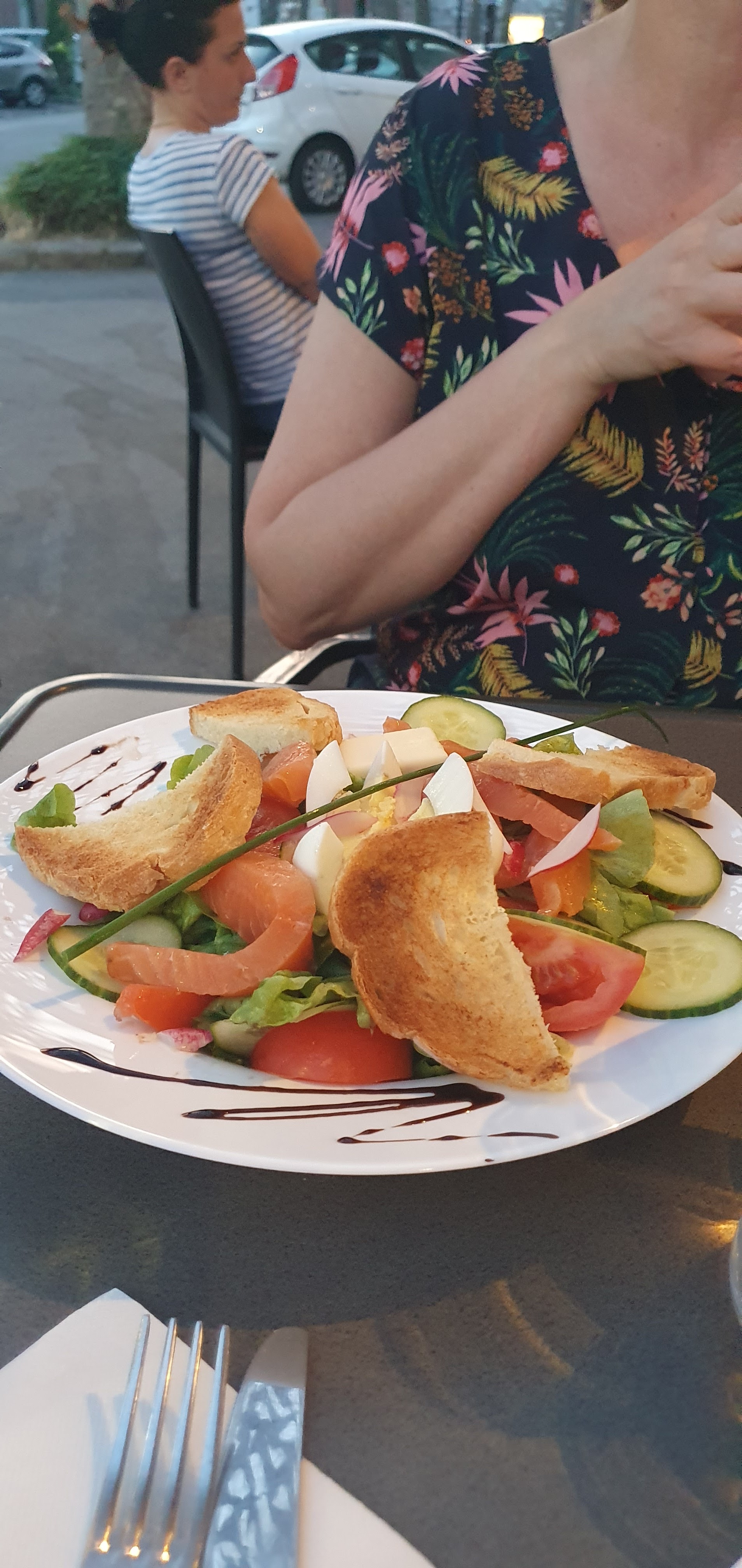 Salle à manger spacieuse. Même si je n'avais qu'une salade atlantique, qui était très bonne, les repas des autres convives avaient l'air très bons et copieux.