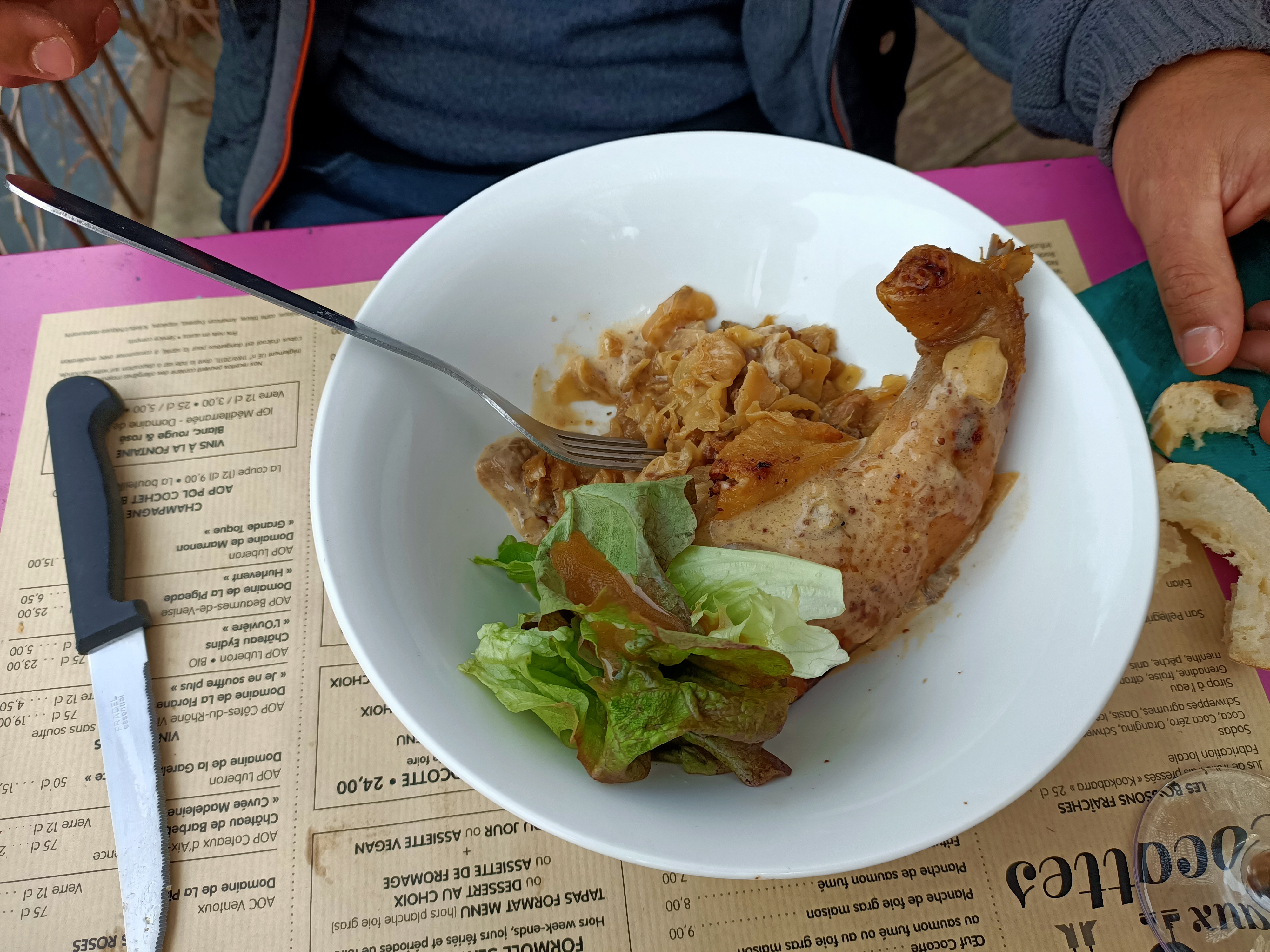 Lieu charmant et intimiste (oui même un jour de marché en aout) en bord de Sorgue. Ombragée, la terrasse est agréable. Concept original, une cocotte à partager, avec des saveurs issues des méandres de la cuisine provençale en sauce des années 90. Tout est bon dans la fonte. On se sert comme à la maison, une bonne franquette à une 20taine d'€ la part (pour le plat), pas donnée mais légitime, dira-t-on, pour la saison touristique, le lieu et la qualité des mets. Le côté boissons n'est clairement pas un atout : carte de vins banale et insignifiante, eau en bouteille plastique et Spritz à 9€. Réservation quasi obligatoire.
