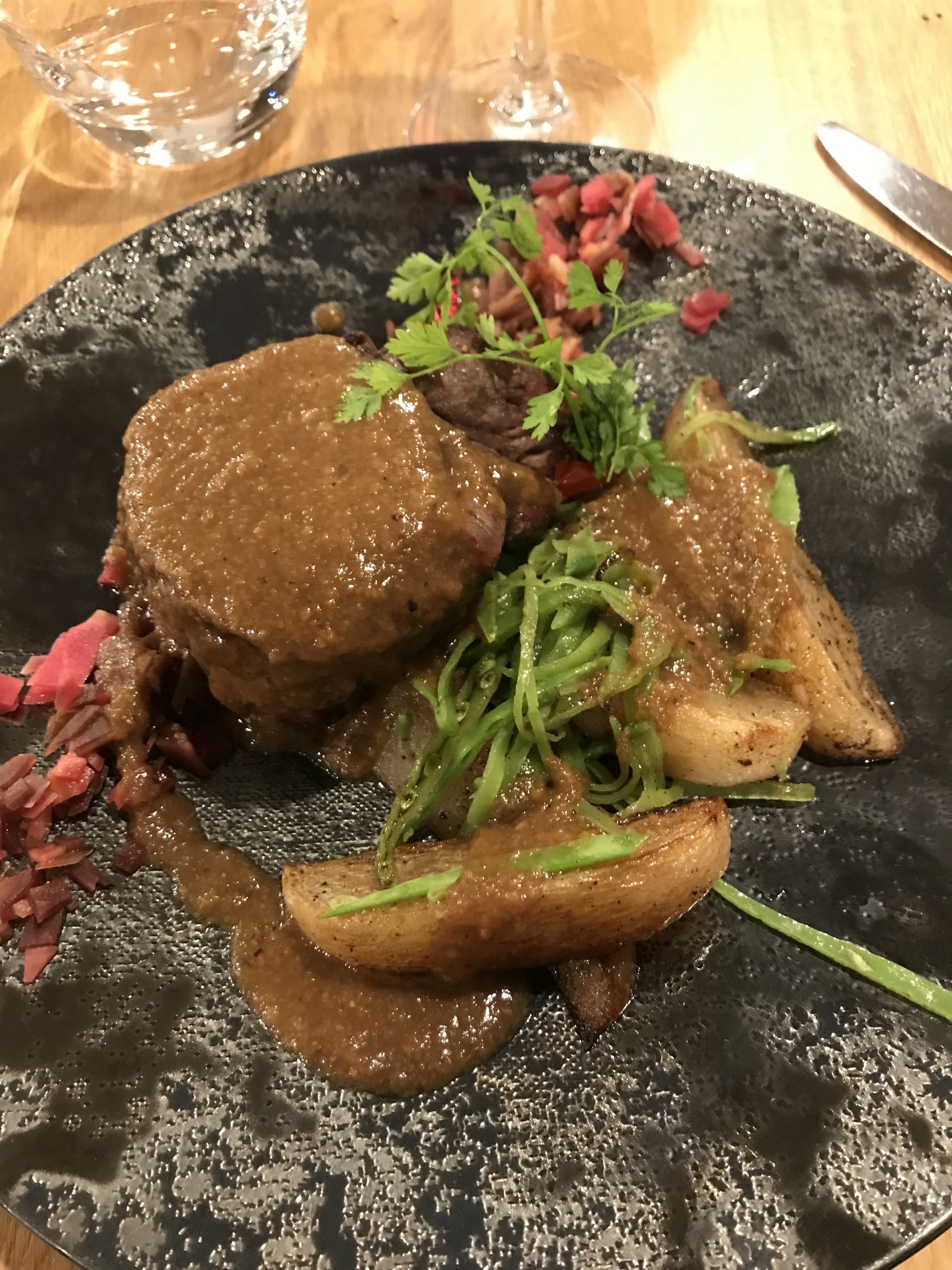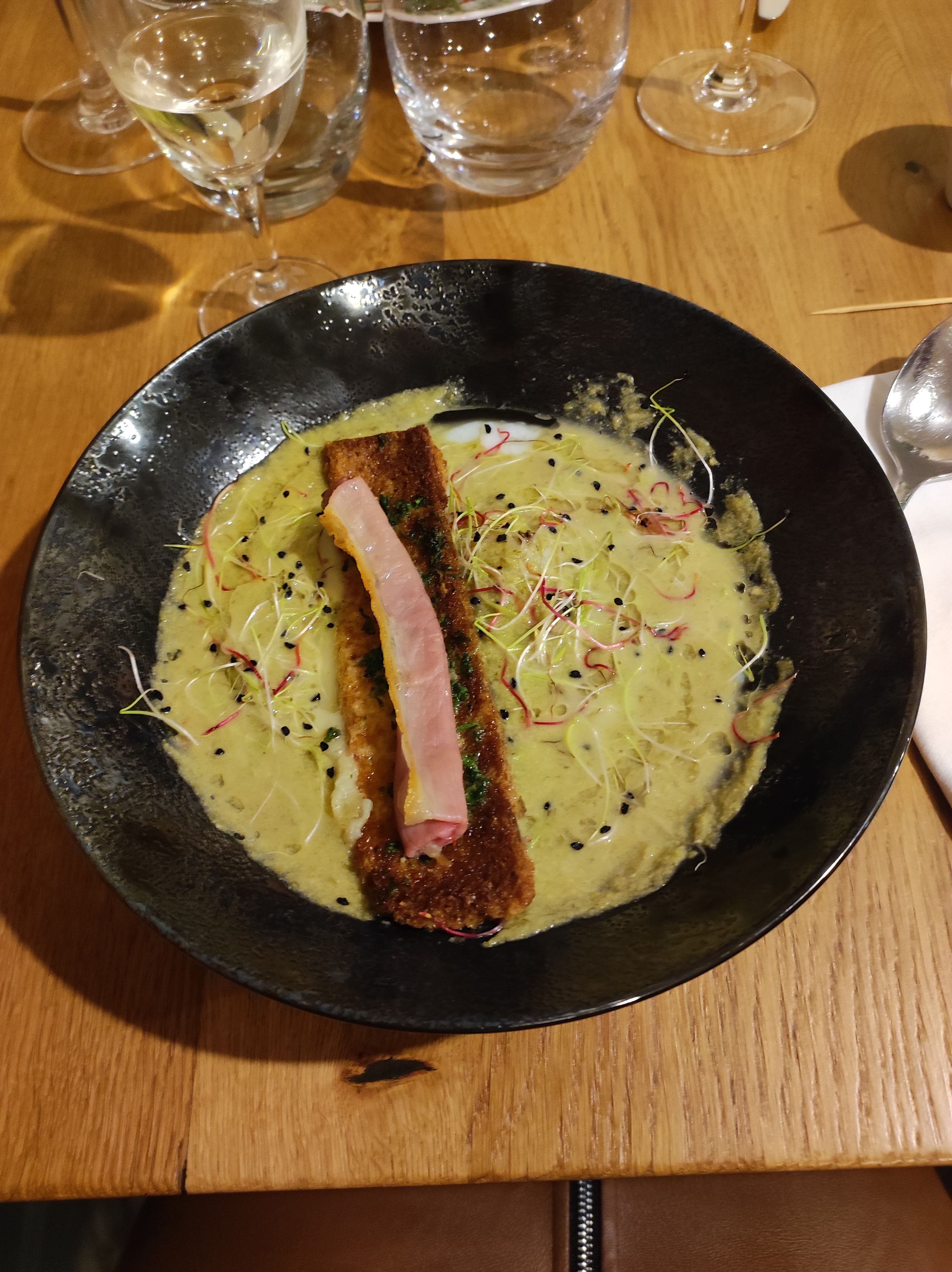 Une merveilleuse soirée ! Un dîner merveilleux. Chaque plat est préparé avec beaucoup de finesse et extrêmement savoureux. Ambiance bistro très agréable, service attentif et professionnel. Nous nous réjouissons déjà de notre prochaine visite !