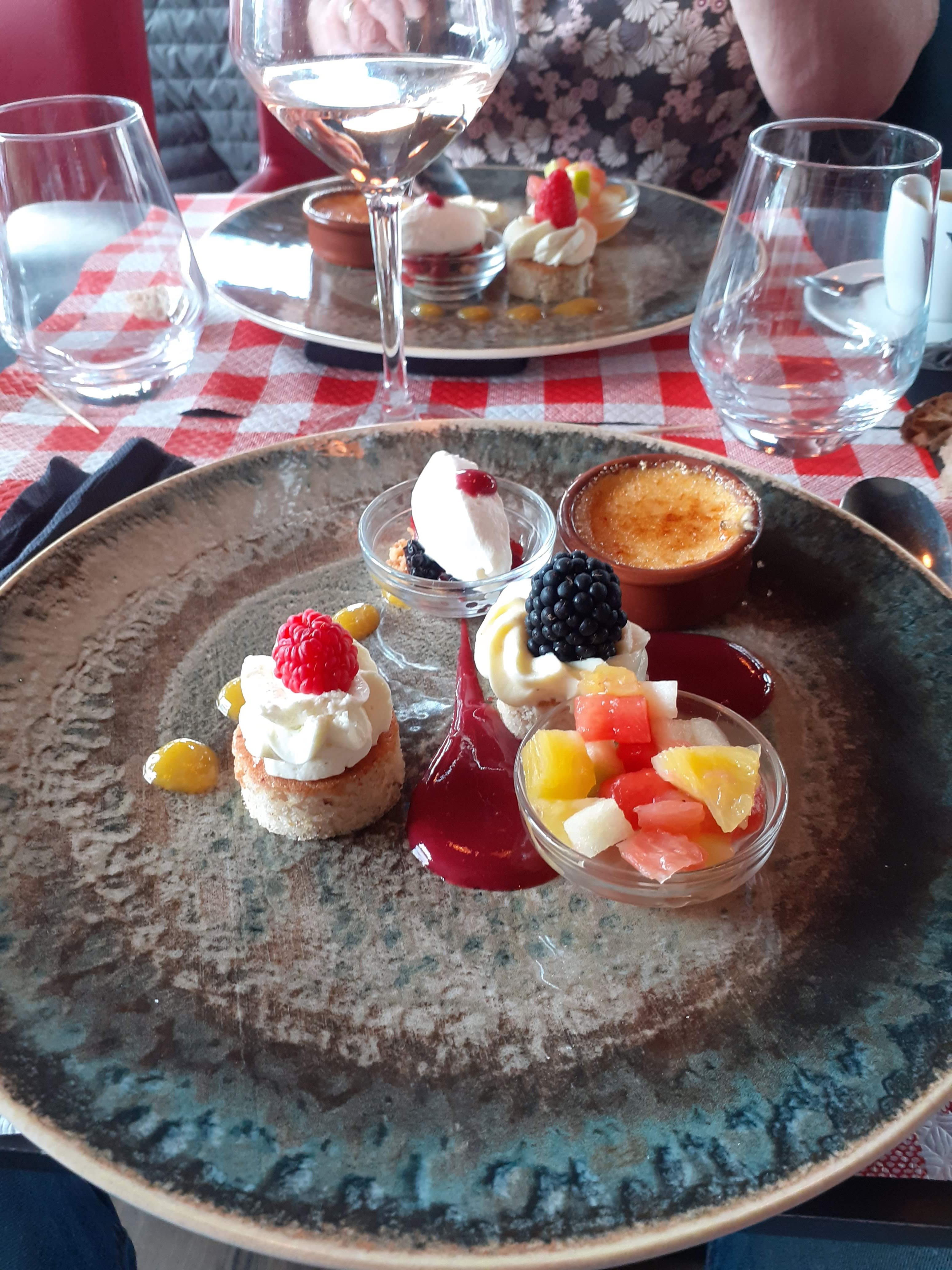 Personnel très sympa Cuisine excellente. Un régal Un vrai plaisir pour les yeux, à déguster entrée, plat, dessert Que du bonheur... Bravo 👏