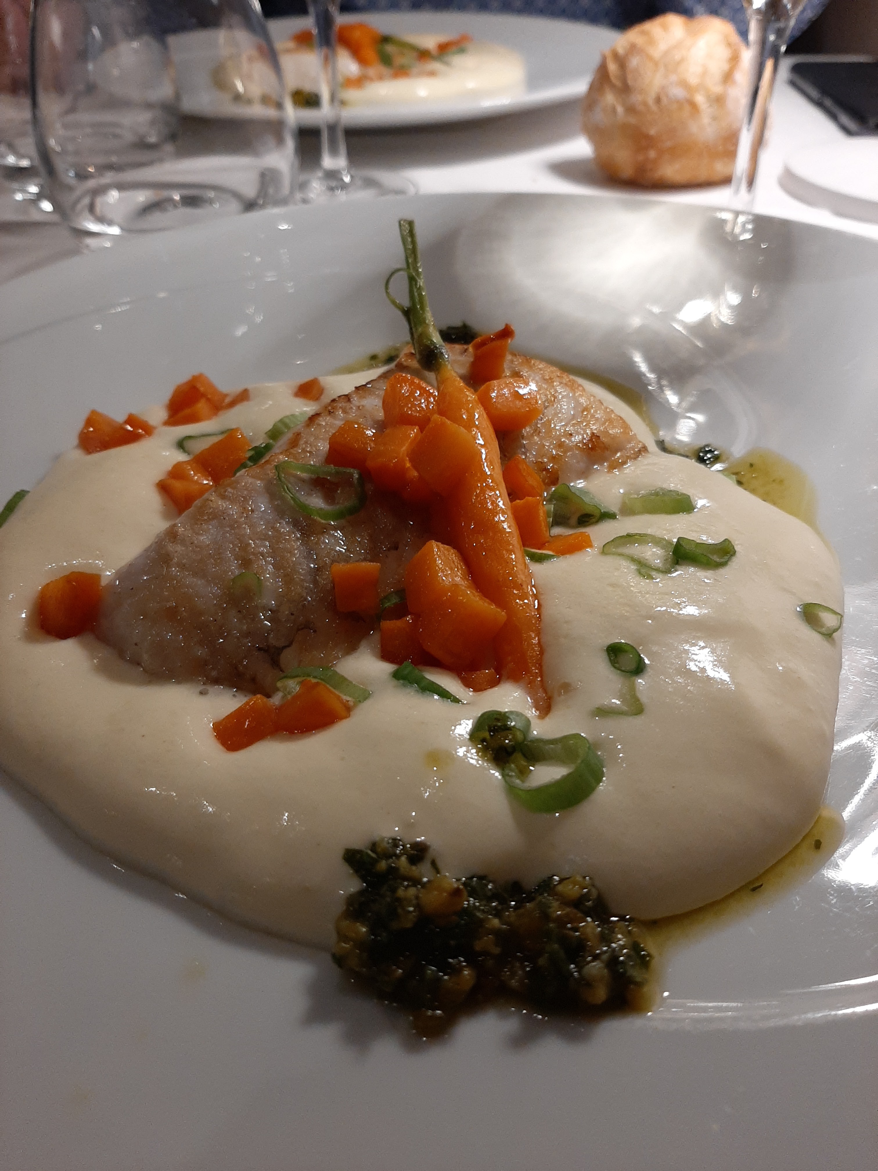 Comme d’habitude, mes parents se sont régalés avec leur fameux aïoli ! Vraie découverte de l’alliance pêche et canard pour ma part 👌🏼 équipe très agréable, un vrai plaisir à chaque visite lors de nos passages à Moulins !