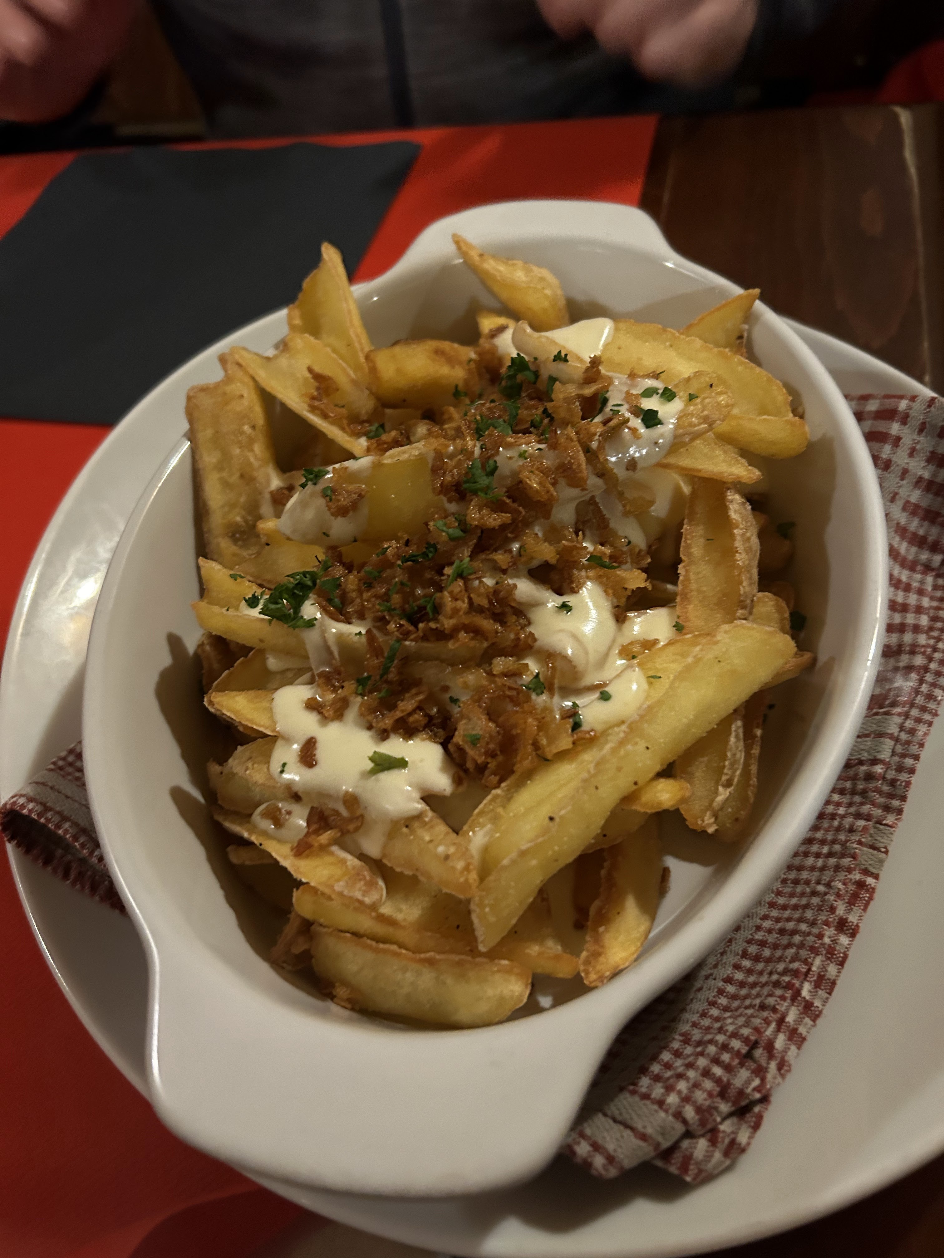 Un bon trouvaille en bas des pistes. Ambiance extra. Nous avons bien mangé pendant que nous nous réchauffions.