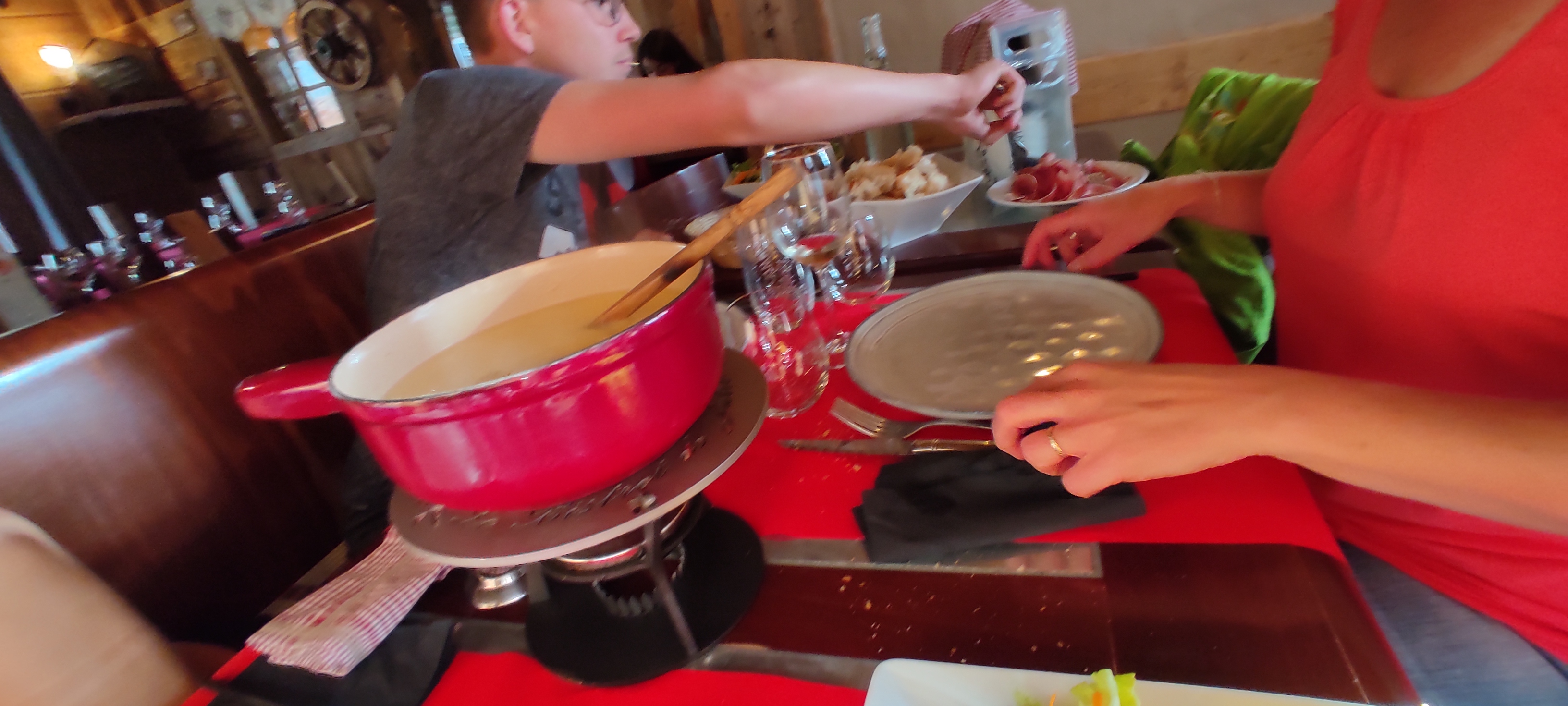 Nous avons mangé une fondue savoyarde très copieuse avec charcuterie et salade prix très correct et pour moi l accueil au top bravo