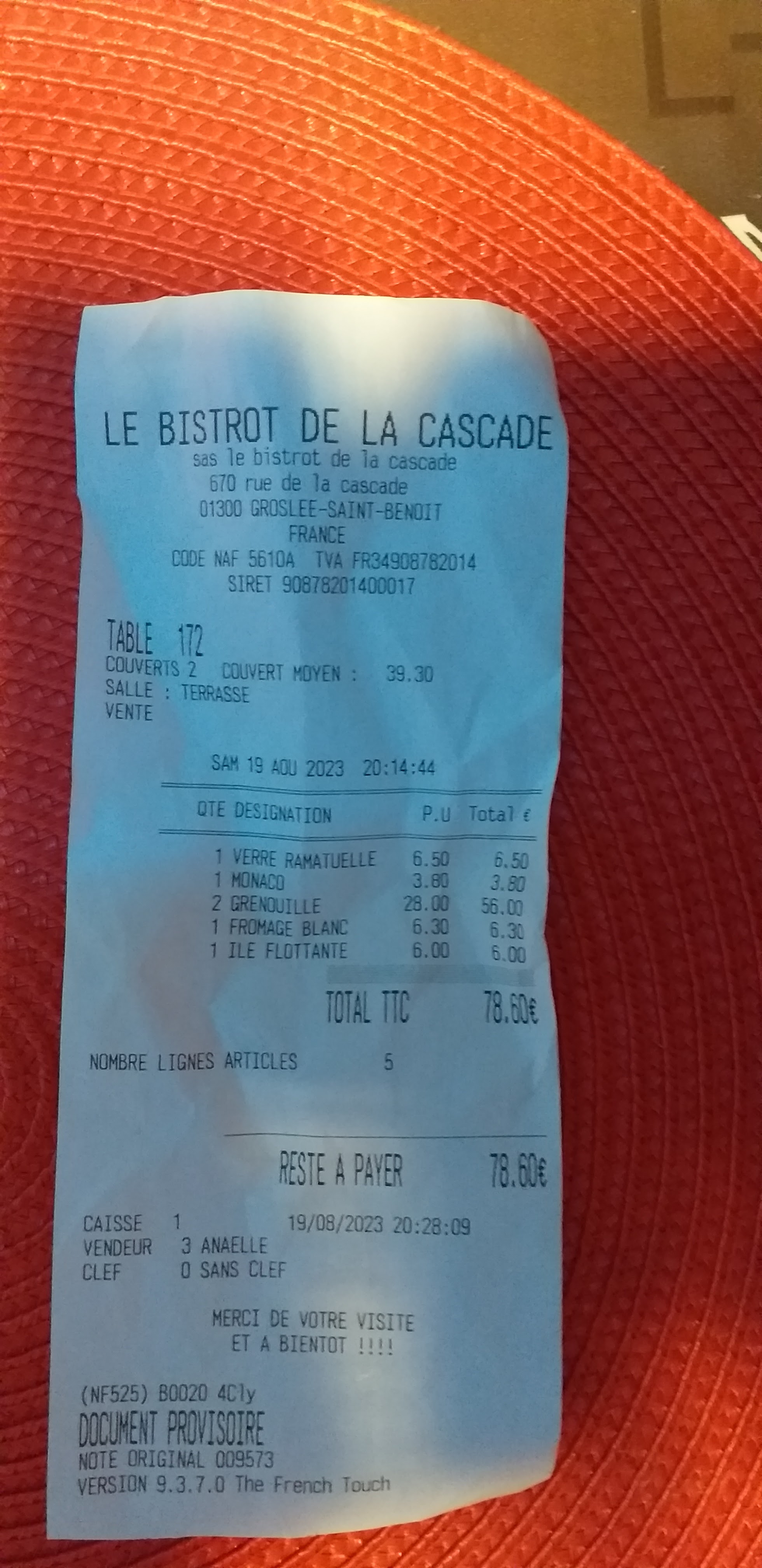 BJR nous étions deux personnes , nous avons commandées des grenouilles gratins et dessert. SURPRISE il y a que 10 cuisses de grenouilles dans l assiette alors qu il est annoncé 12cuisses ( que j ai compter et je sais compter ) et un ramequin de 10 cm de diamètre par 5 cm de hauteur de gratin a moitié remplit . Les grenouilles baignent dans le gras qui a du servir bien des fois ( odeur de rance ) et le gratin baignant lui aussi dans le gras , alors qu un gratin ce fait au beurre et a la crème non a l huile ( je suis dauphinoise de naissance et je sais ce que sais un bon gratin) ... le dessert une vulgaire ile flottante sortie toute droite de chez métro ou autre mais surtout du pas fait maison .. le service lamentable un bruit d enfer , musique a fond , les serveurs et serveuses qui gueulent pour communiquer du fond de la terrasse au comptoir , ils courent dans les allées de tables de partout ( j ai dénombré 10 serveurs et ou serveuses et pas du métier à première vue ) le resto annonce complet mais la moitié des tables sont restées vide jusqu'a la fin du service. même pas 100 couvert dans la soirée ou alors ils sont vite partis le cadre est joli c est pour ça que nous y sommes revenues Question hygiène , faire souper des clients sous un platane ou nombres d oiseaux nichent sans protection des fientes des oiseaux , des feuilles qui tombent et la poussière des arbres .OU EST L YGIENE ????? l ancien propriétaire mettait des parasols lui.. M enfin c est trop chère payé pour ce que c est , très déçus de ce restau qui était super dans le temps j ai déja mangé bien mieux ; pour moins chère et plus tranquille JE VOUS LE DECONSEIL FORTEMENT Nous y reviendrons pas