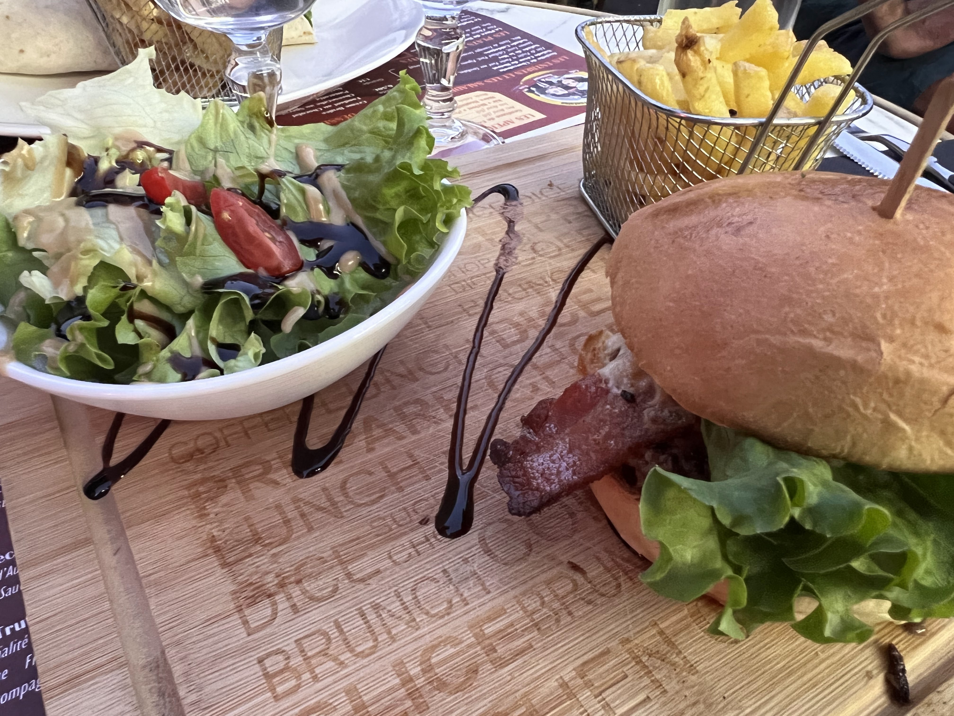 le seul ouvert ce samedi midi. Hamburger maison avec des produits d' excellente qualite, café gourmand exceptionnel. Personnel très agréable à l écoute des demandes du client. Ambiance bistrot chaleureuse. Nous recommandons.