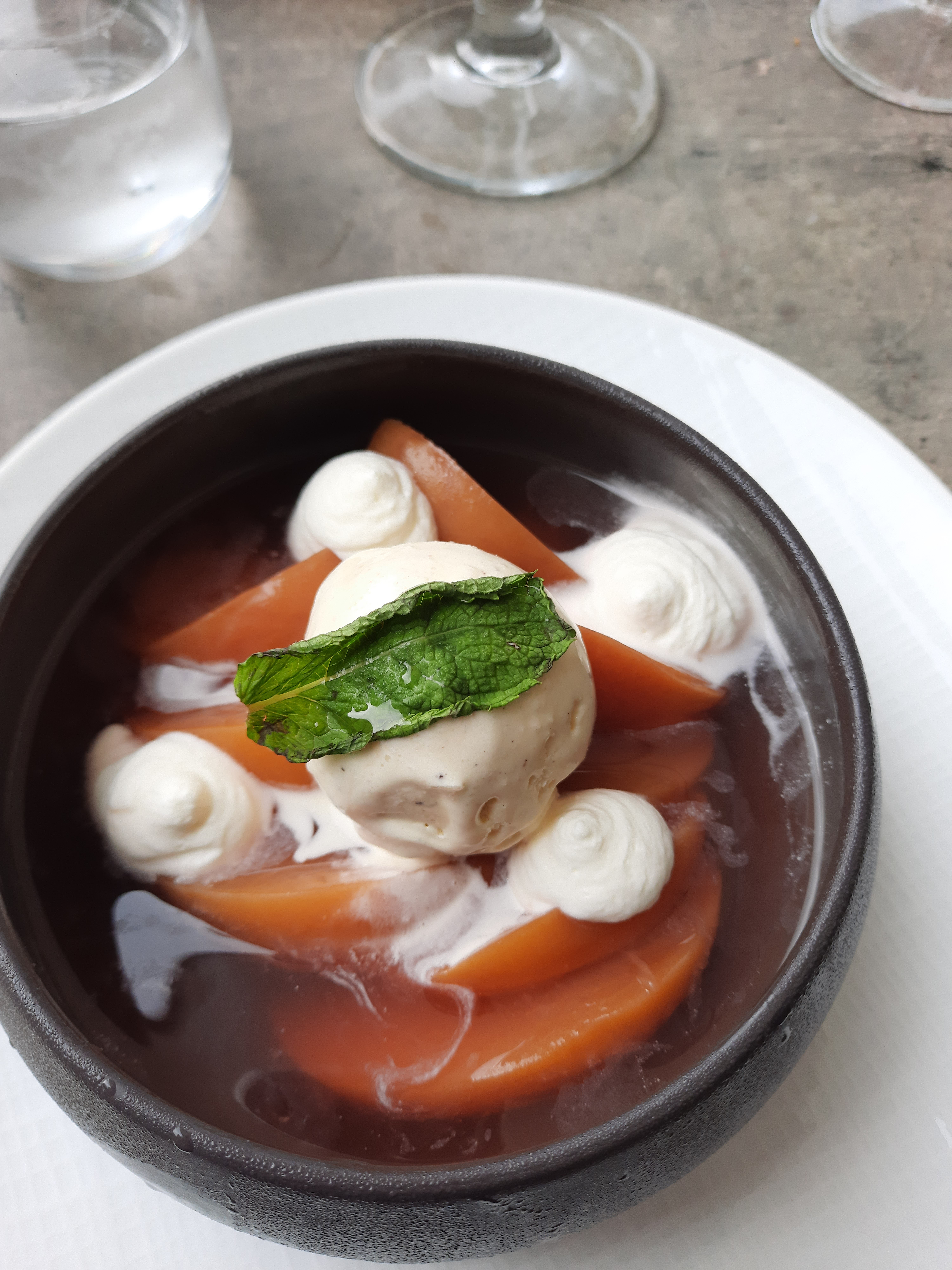 Absolument excellent. Raffiné et fin, j'ai commencé par des raviolis aux petits légumes croquants. Une jolie mise en bouche fraîche et onctueuse, bienvenue quand on sait que le reste sera fait de plats plus gras, comme le confit de canard. Mais un repas déjà délicieux est devenu magique au dessert. J'ai pris une mousse de mangue sur sa salade de fruits, mêlant parfaitement légèreté, sucre et acide. L'apothéose d'un repas mémorable. La carte des vins assez restreinte, mais contribue à un prix globalement raisonnable pour la très bonne cuisine fournie (environ 50€ par personne, en 2016).