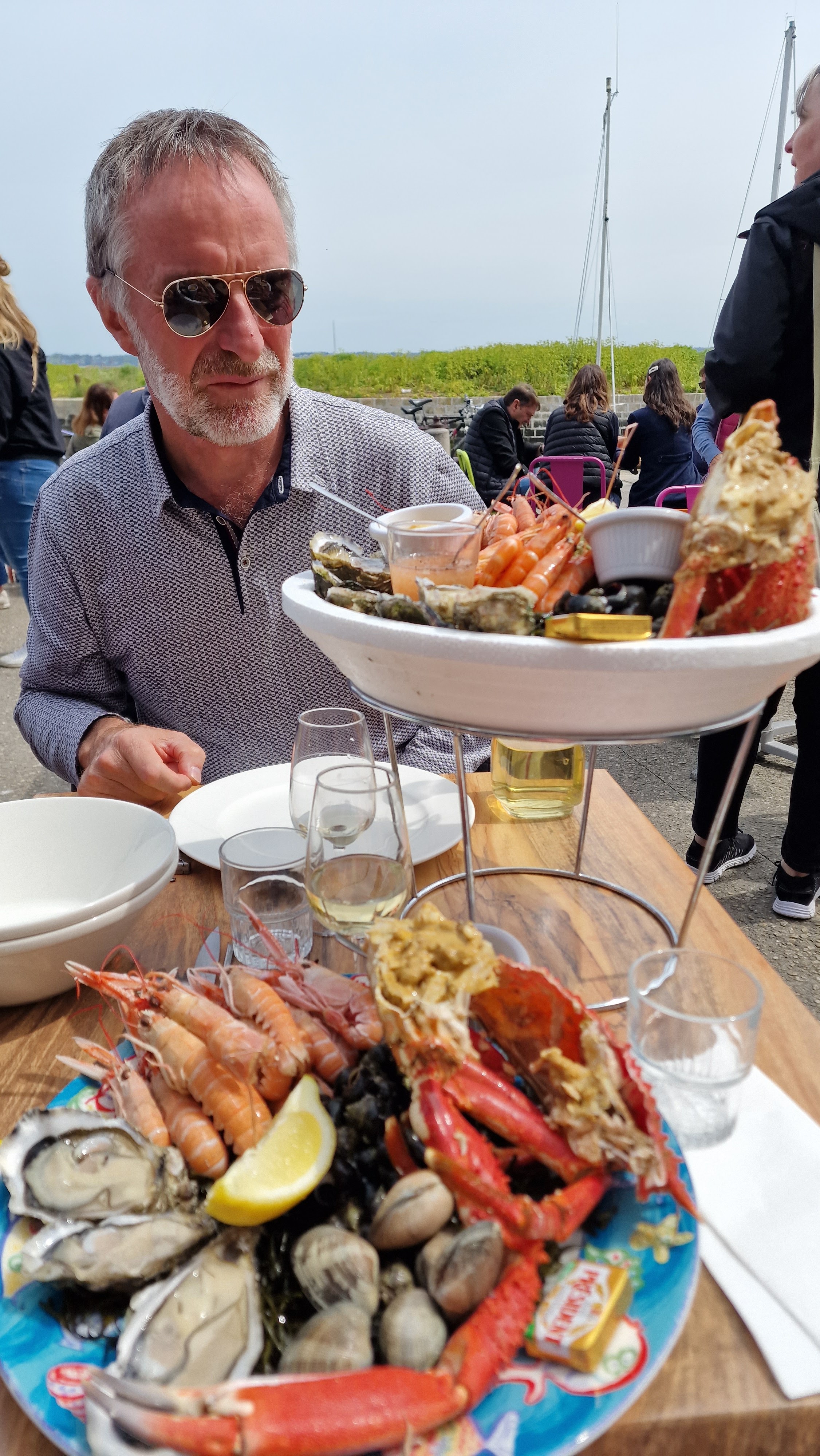 Extraordinaire plateau de fruits de mer au bord de l’eau dans une ambiance conviviale et chaleureuse, on reviendra!