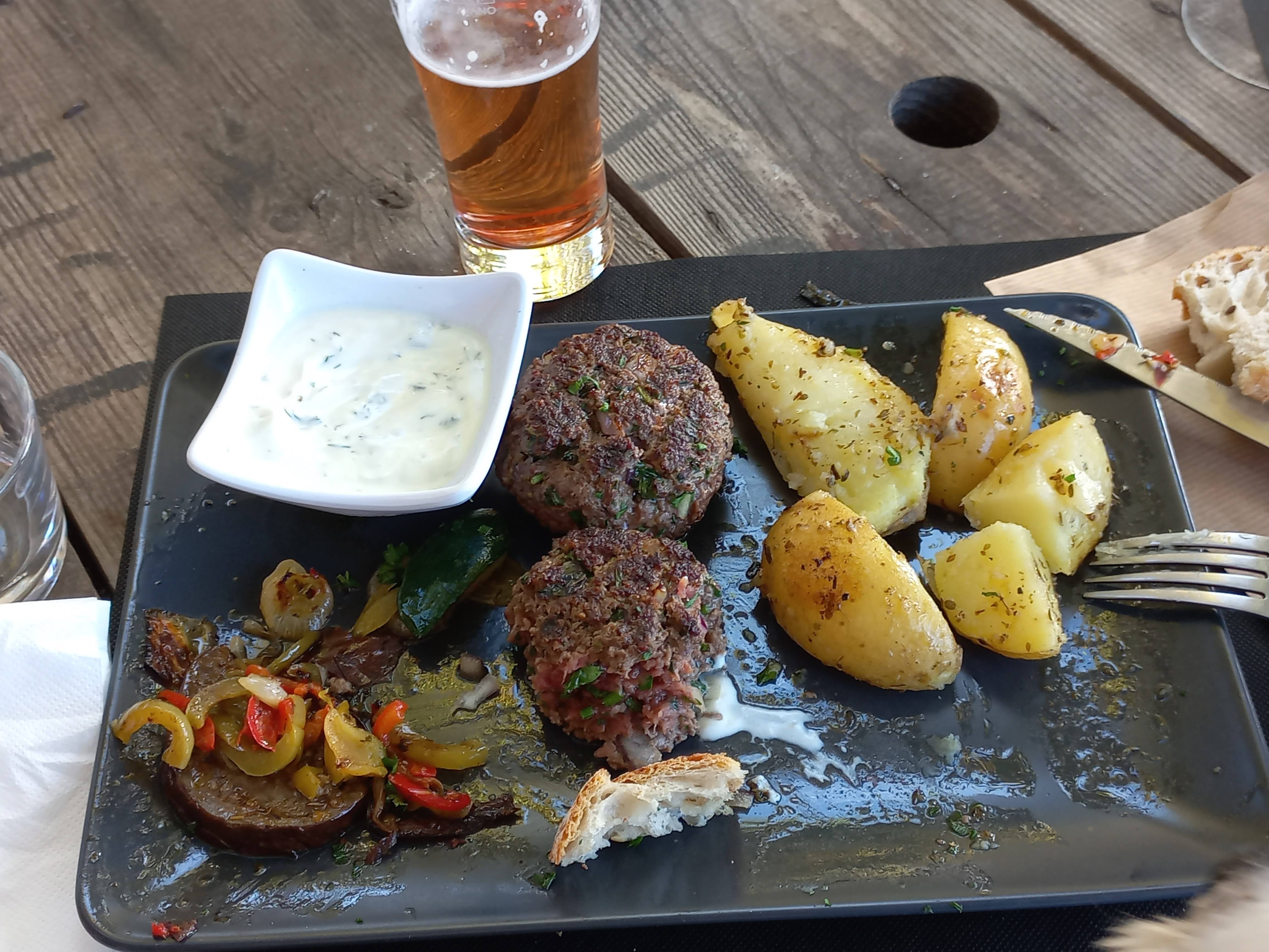 Il y avait un plat du jour. Qui contenait 4 types de viande différents. Cela prend du temps avant qu'ils prennent votre commande. Mon kefta et ma côtelette de porc étaient crus. Les seuls qui ont bien dîné à notre table étaient les moustiques.