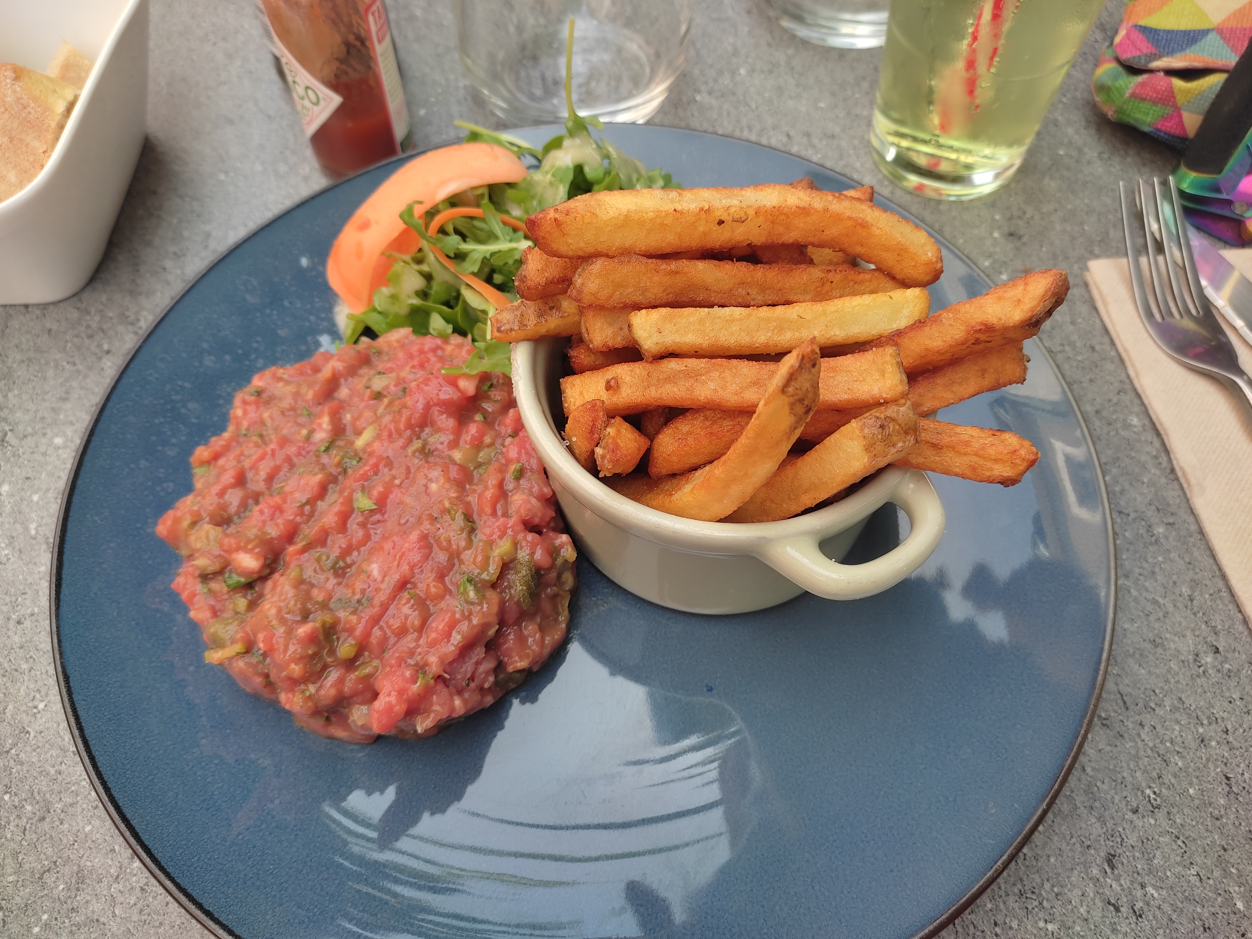 Jolie vu a partir de la terrasse du bistrot, plat du jour très bon avec une cuisson exactement comme demandé. Par contre le virgin MORITO ayant un goût pas très bon pour la boisson. Un service très lent, arrivé à 12h pile en ayant choisi le repas du JOUR a 13,50€ quelques minutes après, nous avons reçu celui-ci seulement a 12h50 ! Quasiment 45 minutes pour un plat du jour cela n'est pas acceptable surtout que certaines personnes ont été servi avant nous de ce même plat. Je recommande seulement à ceux qui ont le temps de manger ou pas.