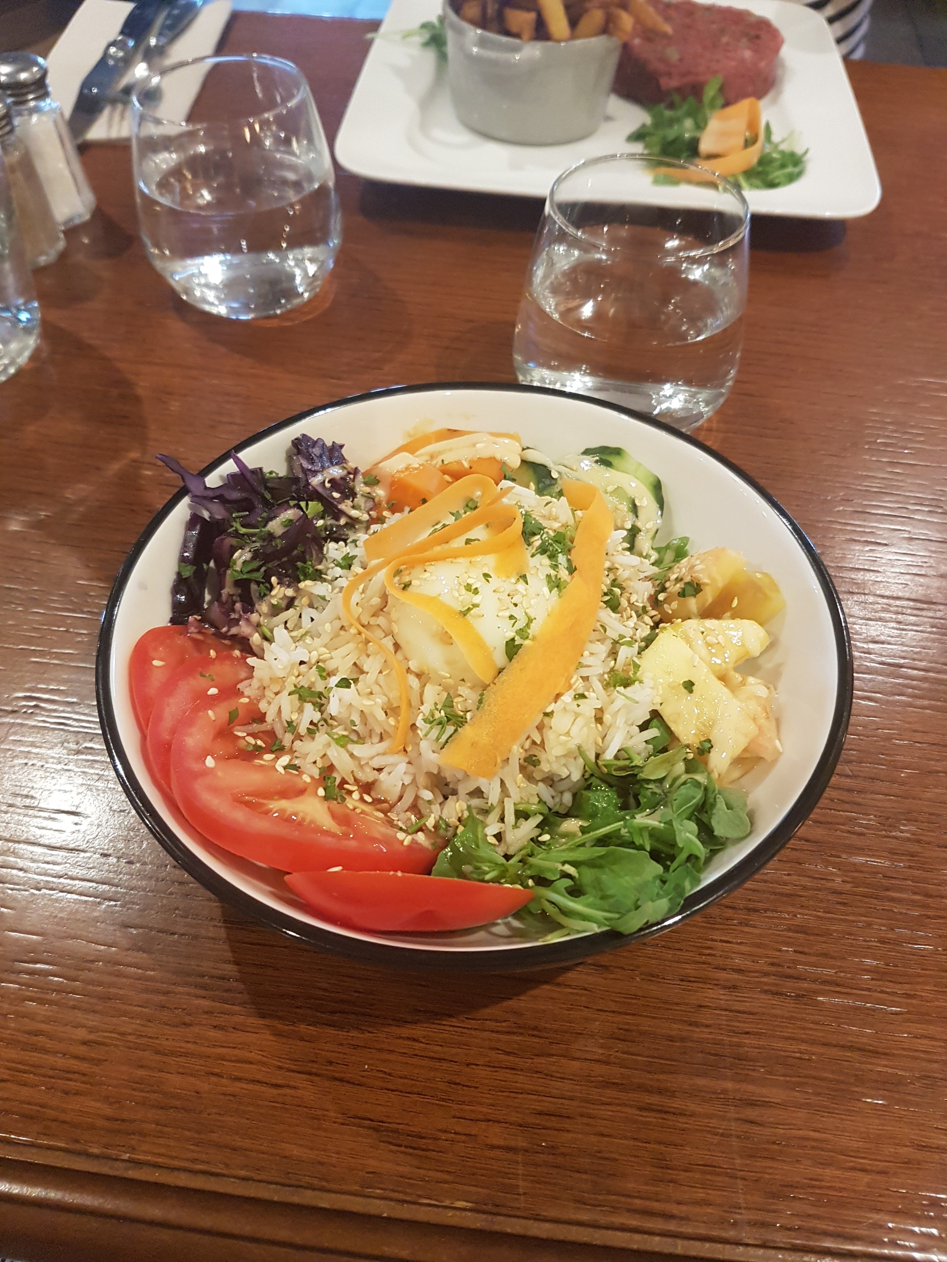 Expérience très moyenne, personnel agréable c’est le point positif, pour le reste c’est moins satisfaisant … en entrée Hareng pomme à l’huile, servi assez curieusement avec des carottes râpées et de la salade. Malheureusement les quelques « morceaux » de hareng n’ont pas masseré dans l’huile bien longtemps, les pommes de terre plutôt très ferme et les rondelles de carottes censées accompagner cette entrée sont d’énormes morceaux ce qui les rends difficilement mangeable. Pour le plat à base de calamar la cuisson était catastrophique, plus aucune consistance, impossible de savoir qu’il s’agissait bien de calamars devant cette sur-cuisson. Après ces deux plats j’ai préféré faire l’impasse sur les dessert de peur d’être déçu. Un peu désolé quand je constate les notes globalement bonne pour ce restaurant, j’ai du tombé sur le mauvais jour. Les personnes m’accompagnant n’ont également pas été séduites , une entrée à base d’avocat ou trois/quatre fines tranches se baladaient dans l’assiette. Voilà, dommage car le cadre est agréable mais la qualité de restauration ne nous fera pas revenir.