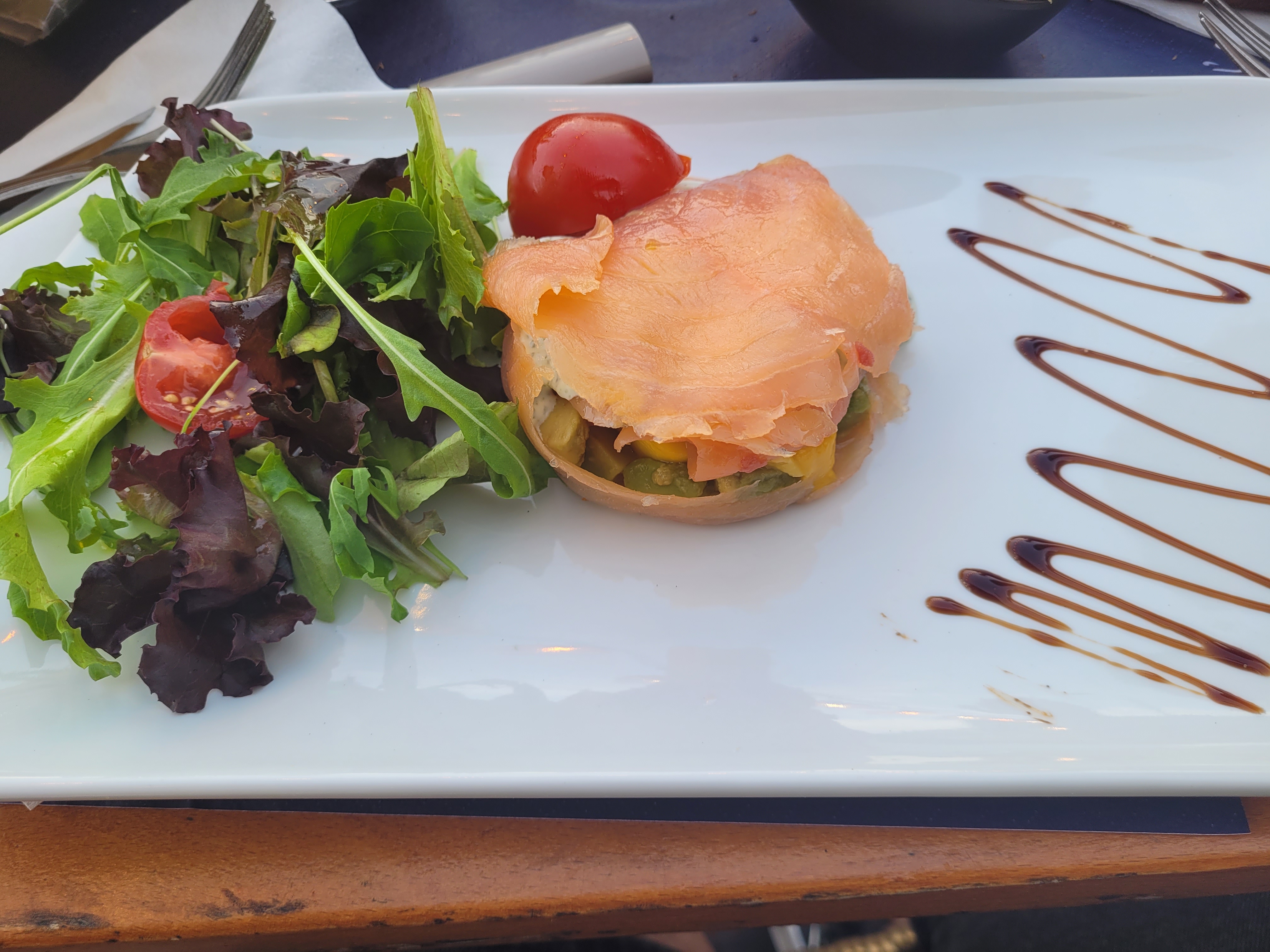 La salade de la mer est divine. La tarte fine aux pommes est excellente. Le serveur est charmant. Musique d'ambiance ++++ Je reviendrai volontier.