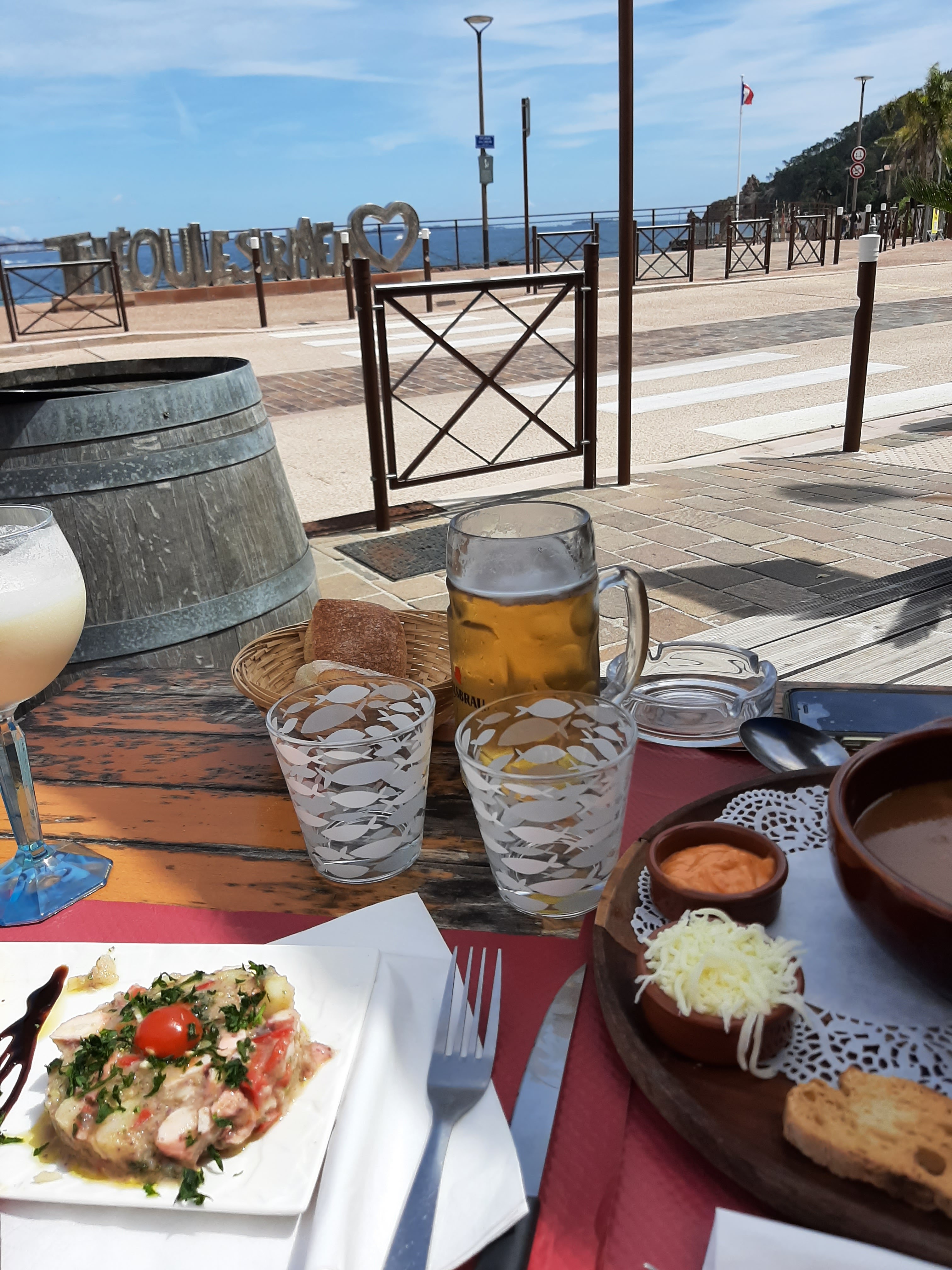 Mauvais souvenir, lotte à l'aïoli : aïoli jetait dans un pot, 2 carottes, un morceau de courgette , un oeuf coupé en deux, le tout jetait dans l'assiette, des moules si on peut appeler ça des moules, toutes frippées, elles devaient être au fond du congélateur, et une petite patate cassée en deux, et pour couronner le tout, nous avons été servi en décalage mon conjoint et moi, car la serveuse avait juste demander un plat, pour s'excuser on nous a offert un limoncello qui se noyé dans les glaçons. Aucune présentation, même si c'est un bistrot, cela n'empêche pas de faire ça bien, restaurant qui ne mérite pas sa place en face de la mer!!!!! Par contre les alcools on pourrait se croire dans un grand restaurant 🤔 Je ne recommande pas, poisson caoutchou, tout ça pour 78 EUROS ( 2 apéros, 2 verres de vin blanc et 2 lottes aïoli)