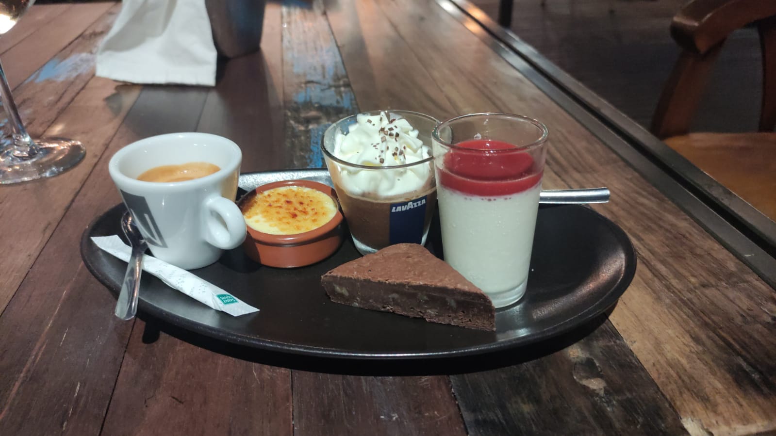 Apéritif un bock Monaco comme je les aime et puis deux , ensuite l'entrée un planche de charcuterie qu'on a partagé a deux.... topissime, le personnel impeccable, de l'accueil, de l'enthousiasme, des sourires, et de la communication, esprit motard obligé je dirais 😁😁😁 le plat...pas a la hauteur des mets précèdent j'adore le tartare mais aime bien voir la viande bien rouge plutôt que les assaisonnements déjà mélanger (avis perso) mon collègue une bonne viande , une petite erreur sur la sauce mais bon goût au top et en dessert un café gourmand.... Gourmand quoi mais je reste sur le souvenir de ma peinte et de ma planche j'irai pour l'apéro c'est sur , et les serveurs changer rien vous êtes au top