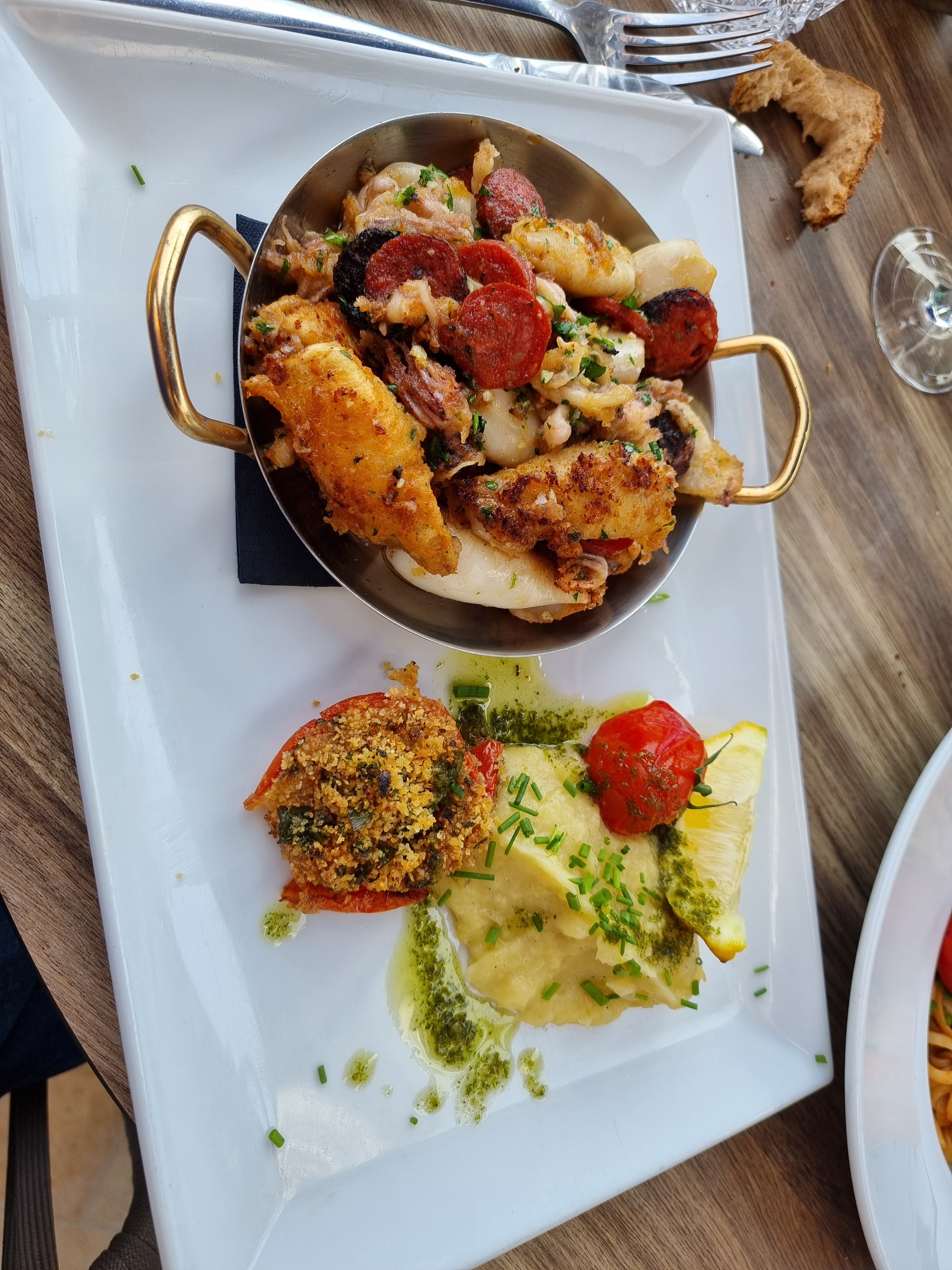 Service impeccable mais repas vraiment pas terrible. Je pense que la totalité est surgelée. Comment appelé une recette « calamar aux chorizo » et se retrouver avec des calamars frit et sans aucuns doutes congelés. Baignant dans l’huile avec 3 bouts de chorizo. L’emplacement est en revanche bien sûre impeccable mais nous venons dans un restaurant pour y manger.