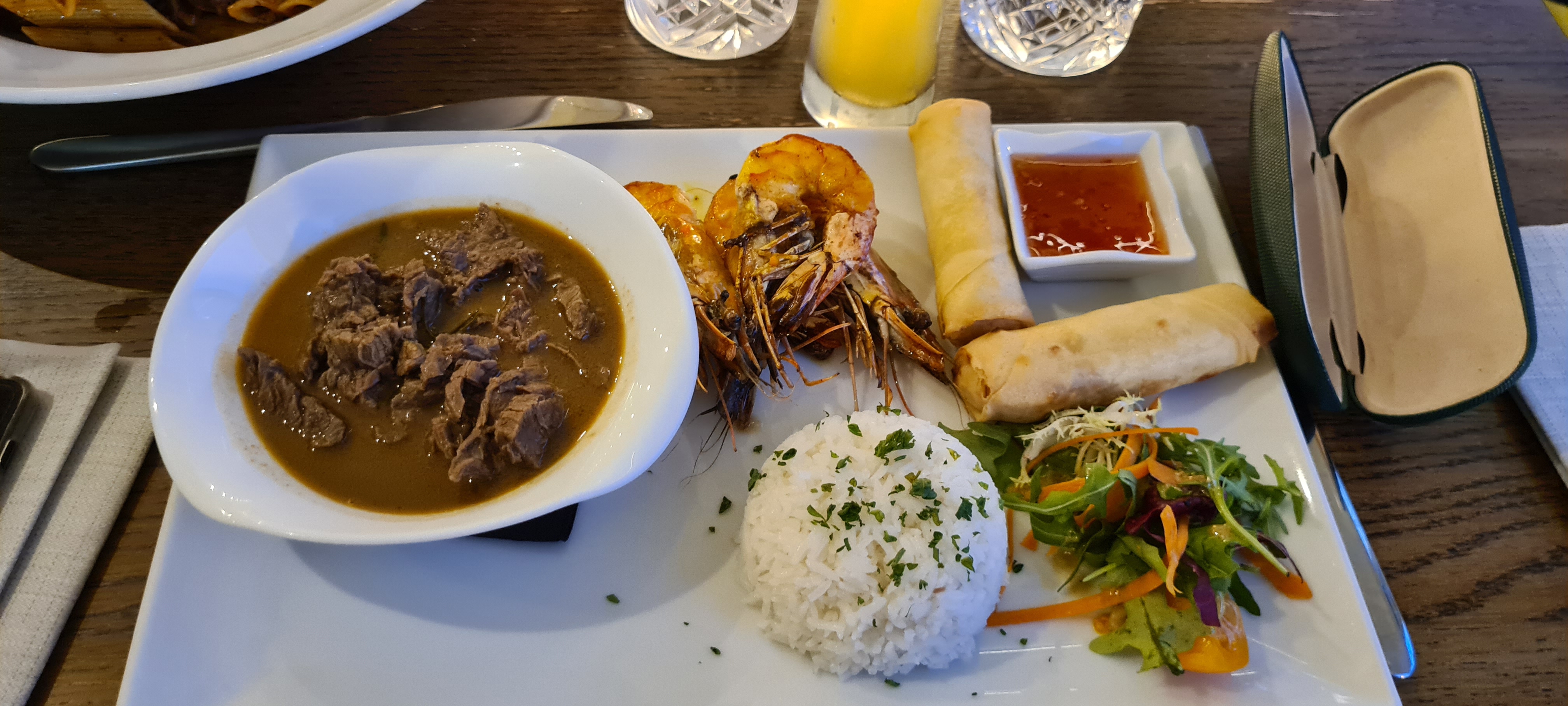 Excellente découverte ! Un accueil très agréable, personnel sympathique et à l'écoute, très arrangeant niveau emplacement (très belle vue sur le port). Trois repas goûtés (brochette de lotte, pad thaï poulet et taglioni à l'encre de seiche) , chacun aussi goûtu et copieux. Rien à redire, plus qu'à goûter tous les autres plats :)