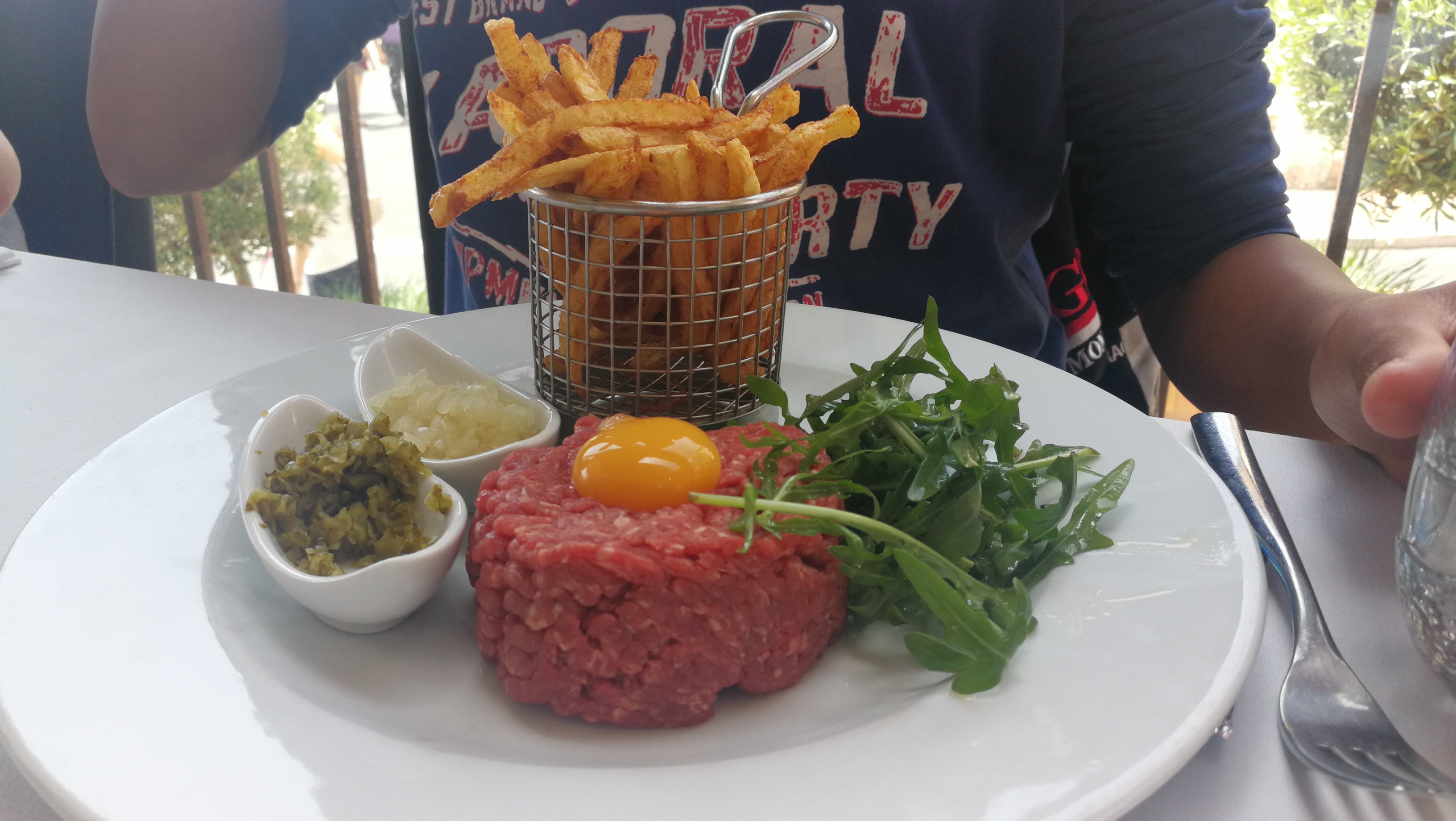 Personnel très sympa et très pro. Nous avons mangé des tartares de bœuf à l Italienne qui étaient très bons et bien servis. Le vin au top et pour finir un excellent café Illy dont la réputation n'est plus à faire.