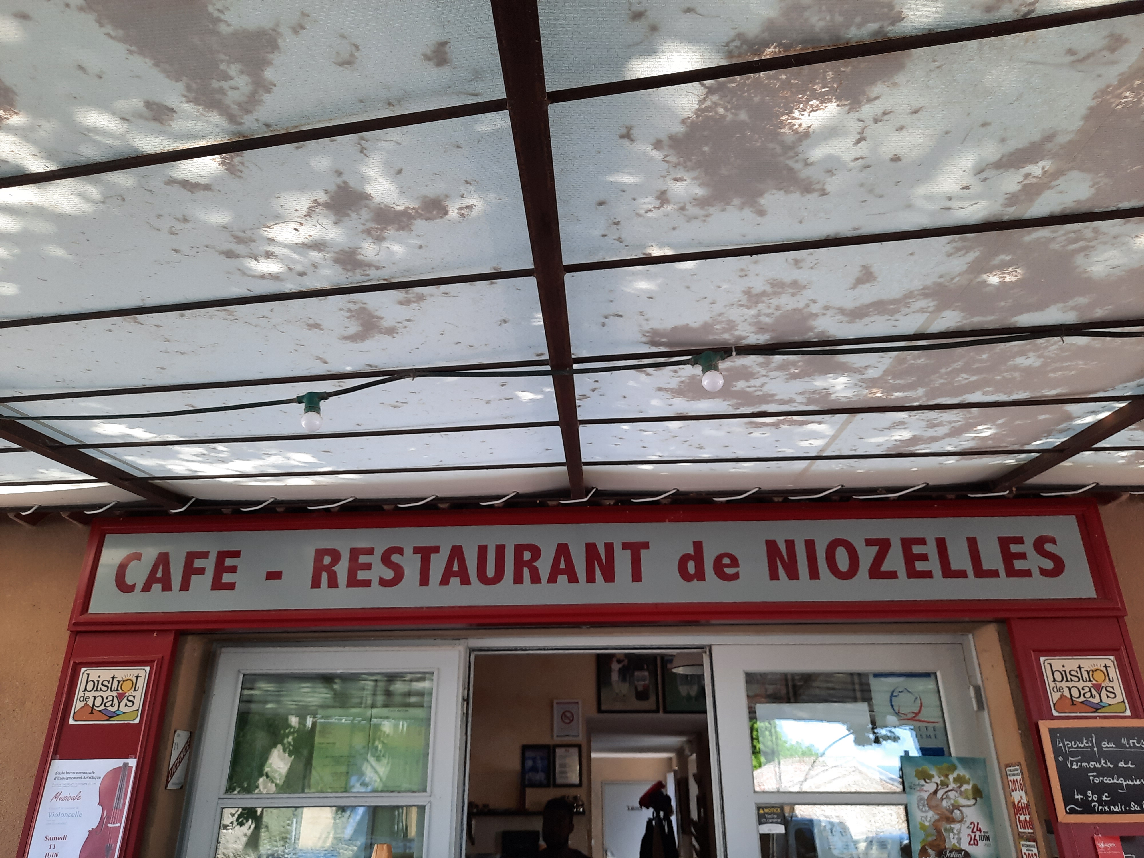 Lieu très agréable cuisine provençale d'antan délicieuse c'est le patron qui fait la cuisine très gentil et très sociable ainsi que Christian le serveur qui a beaucoup d'humour et pourra vous traduire vos menus en cinq ou six langues en plus il y a Mathieu en cuisine qui se démène pour le bon déroulement du service voilà n'hésitez pas à venir découvrir notre joli petit village et prendre votre repas au Bistrot de Niozelles