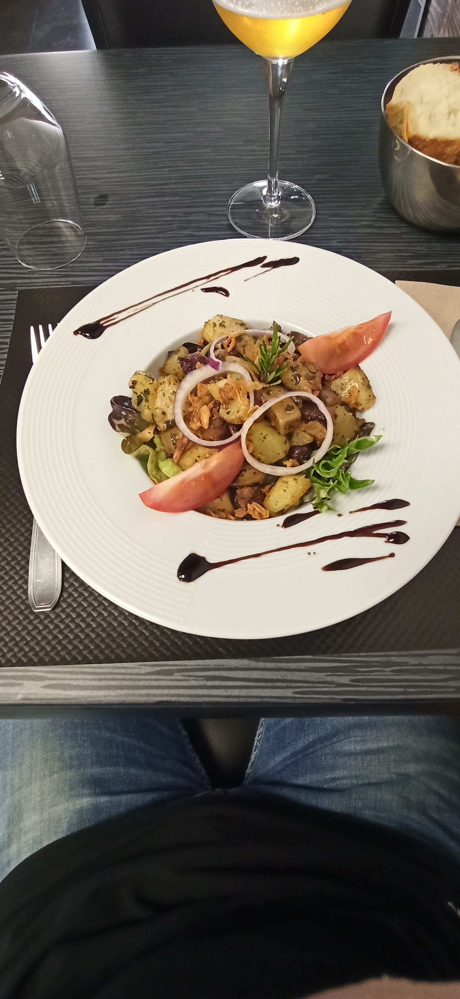 Nous sommes en Champagne en vacances en Écosse. Nous avons mangé dans de jolis restaurants à Reims. Aujourd'hui, nous avons décidé de traverser les vignes de Berru pour essayer ce restaurant. Les attentes n’étaient pas grandes car c’est dans un petit village champenois. Mais c'était absolument fantastique !! Chaque cours était incroyable ! Des produits vraiment frais et fabuleusement présentés. C'était aussi bien que le toit bien plus attendu de Gabriella à Reims et 1/3 du prix ! Les plats étaient tellement bons que j'ai oublié de prendre une photo ! Dans le désert, nous avons eu de la crème brûlée, c'était fantastique aussi ! 3 plats chacun, 1 grande bière chacun et 1 expresso chacun pour 68 € ! merci mon ami!!! 👌🏻