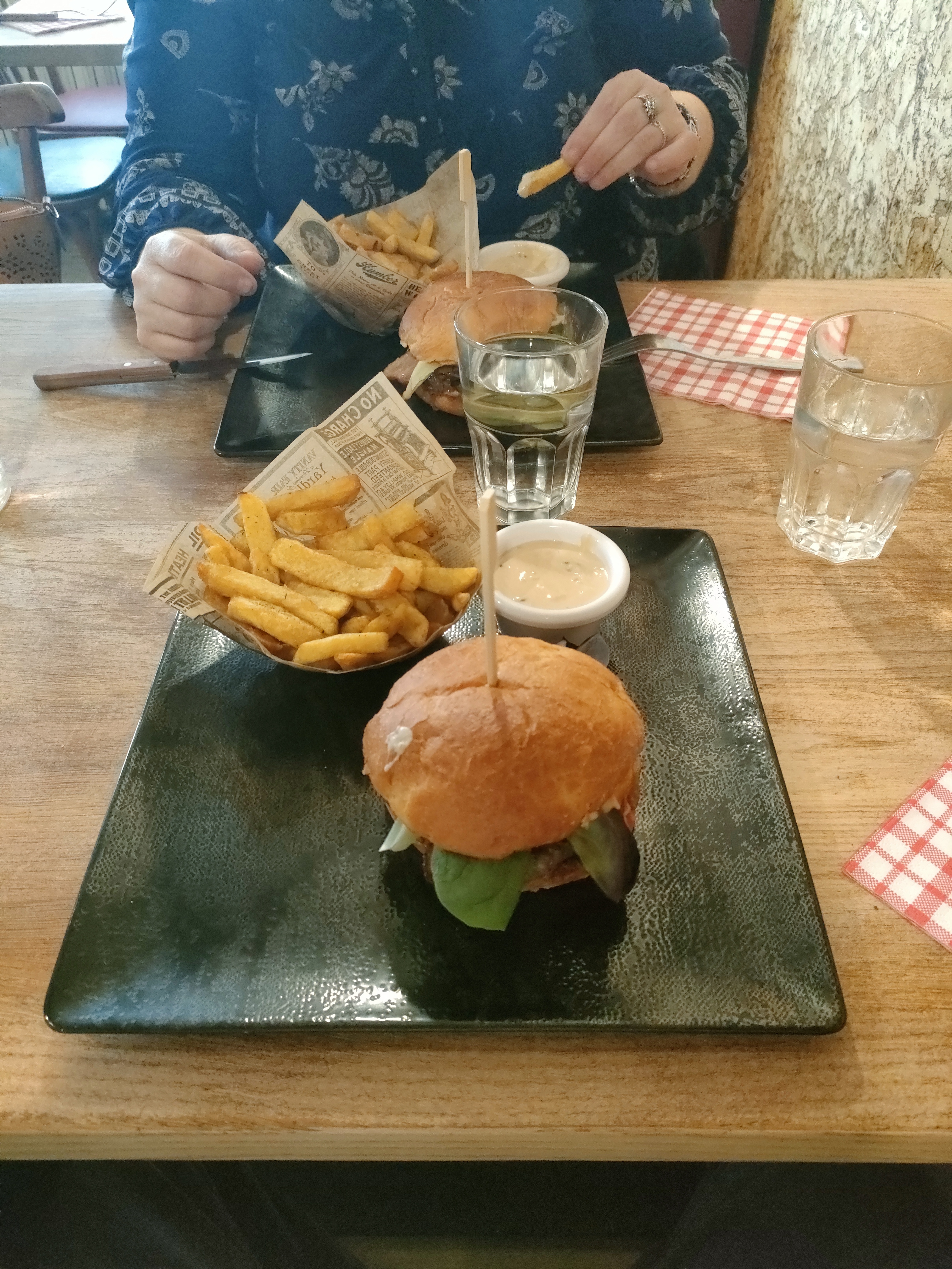 Sympathique ce bar restaurant, ambiance brasserie. La carte propose un éventail d'entrées plats et desserts dont le fameux Burger de papa ! Et c'est bon.!!! Le personnel est accueillant, il y a mal pas de monde cependant le service n'est pas très long... il vaut mieux réserver, fermé le dimanche et le lundi.