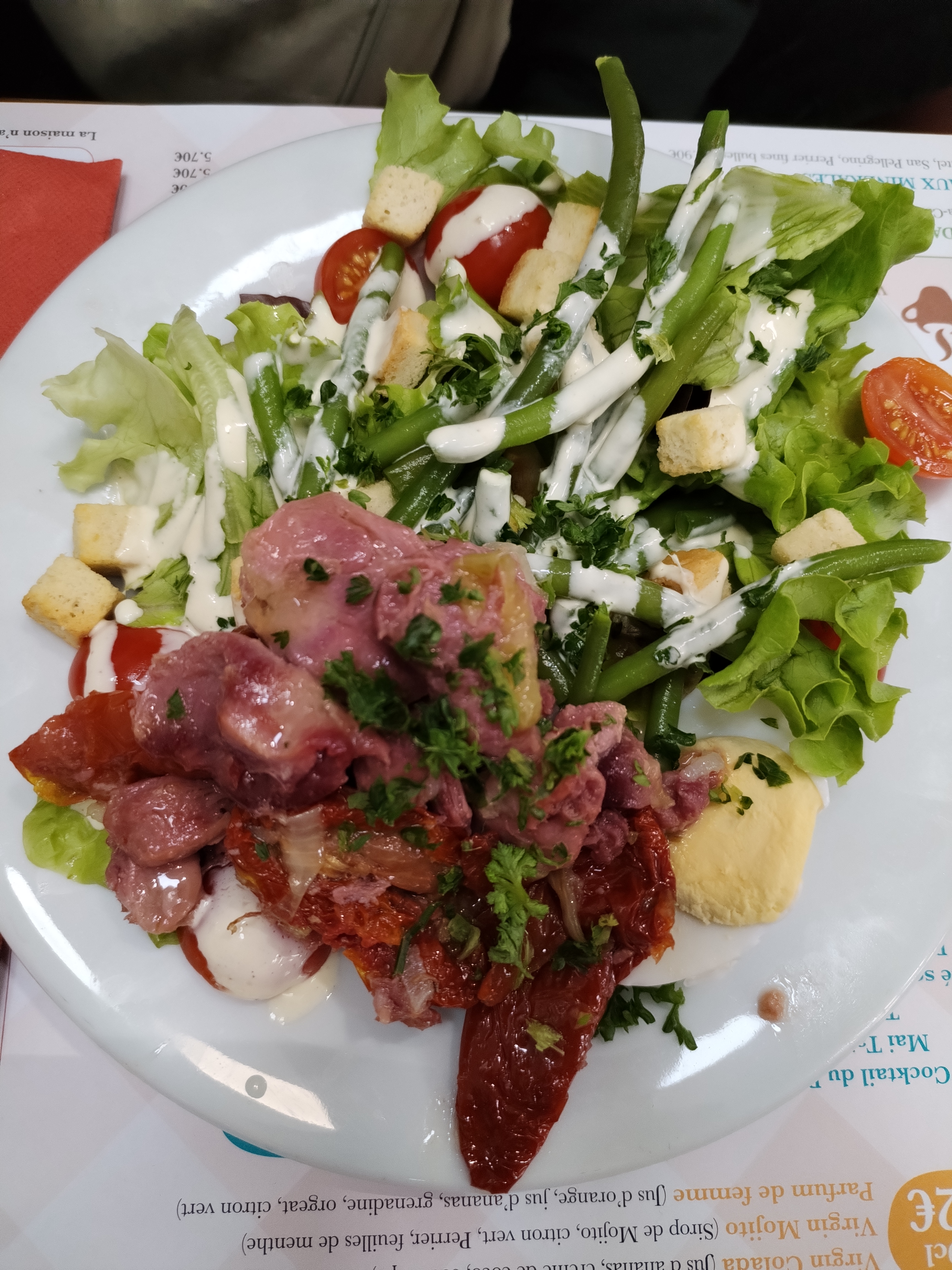 Pas terrible du tout serveuse souriante mais plats très décevants ,tartare ressemblant à de la chaire à saucisse . Pailles froides. Et certains clients(es) très imbibés et très bruyants , les autres plats étaient moins décevants .1 ère et dernière fois