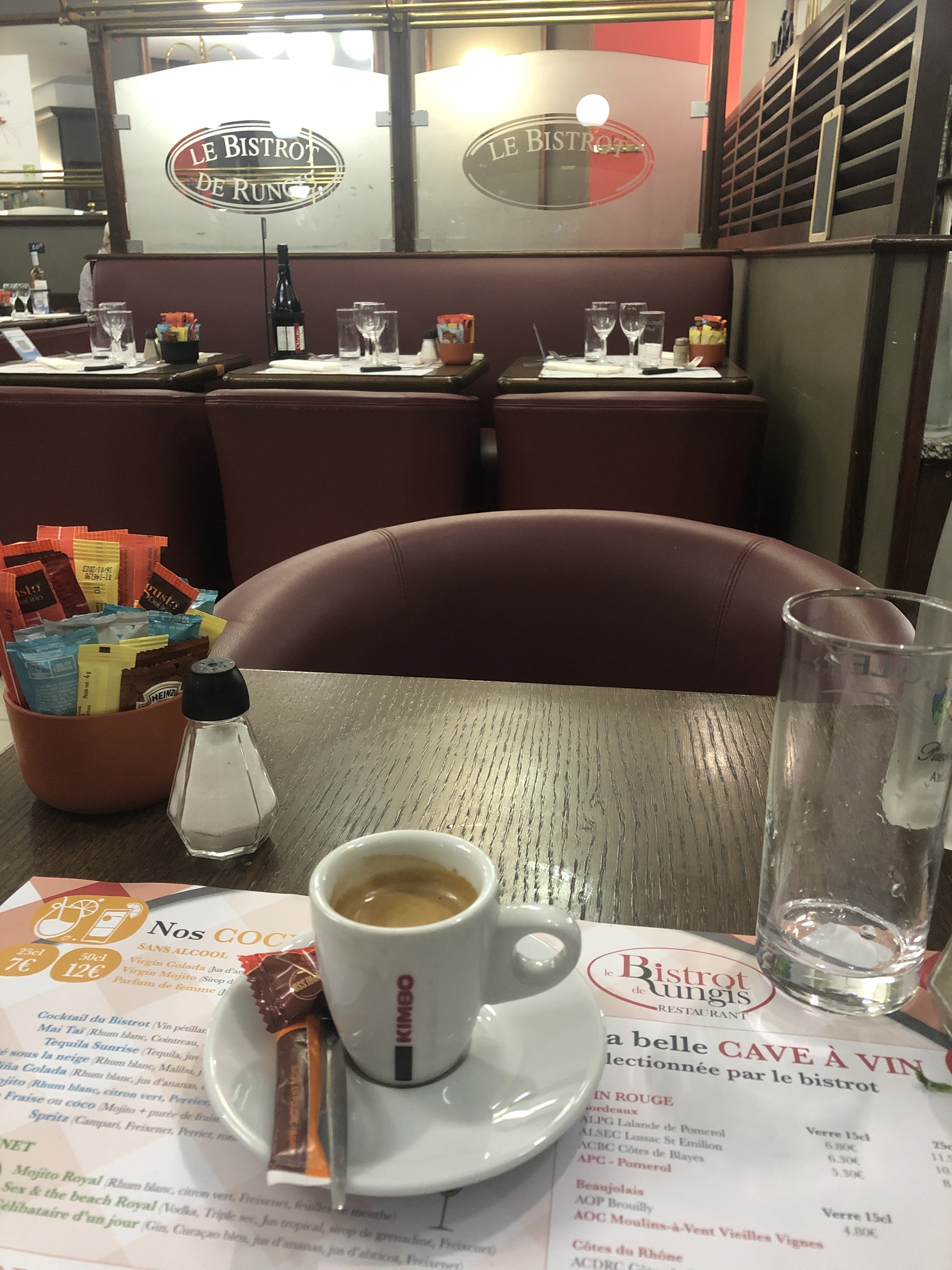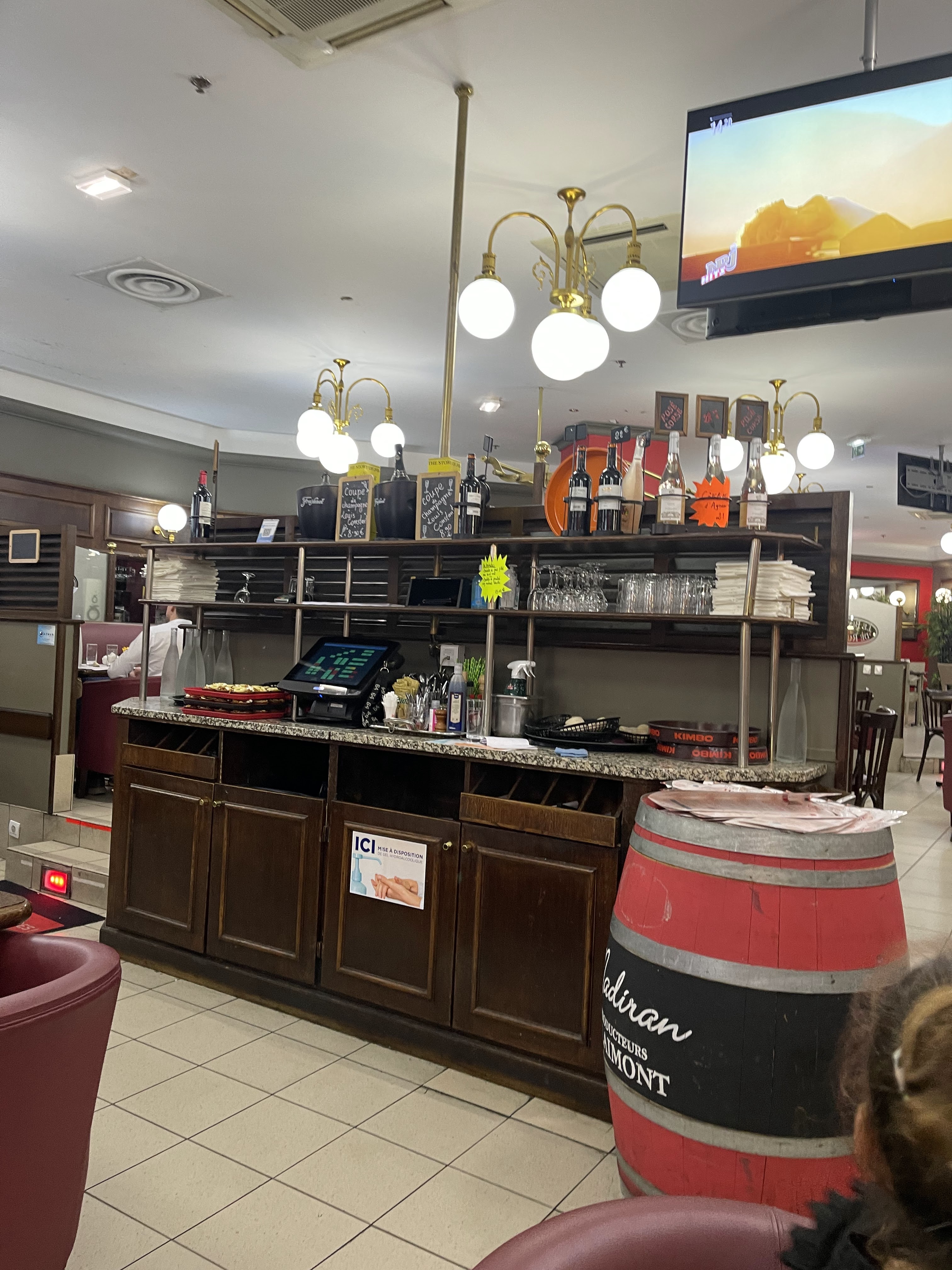 Après une balade et quelques achats dans le Centre Commercial, nous avons décidé de boire un verre au comptoir de ce Bistrot situé en plein milieu de l'espace restauration de Belle Epine. Nous avons été servis par Mamadou, qui assurait derrière le bar la préparation de cocktails et boissons sur place. Nous avons choisi un cocktail Impérial pour madame et un Kir Impérial pour ma part. Mamadou a assuré la préparation des boissons avec soin et on a tous les deux apprécié notre apéro, servi avec des biscuits secs et le tout pour un prix très abordable. A réessayer !