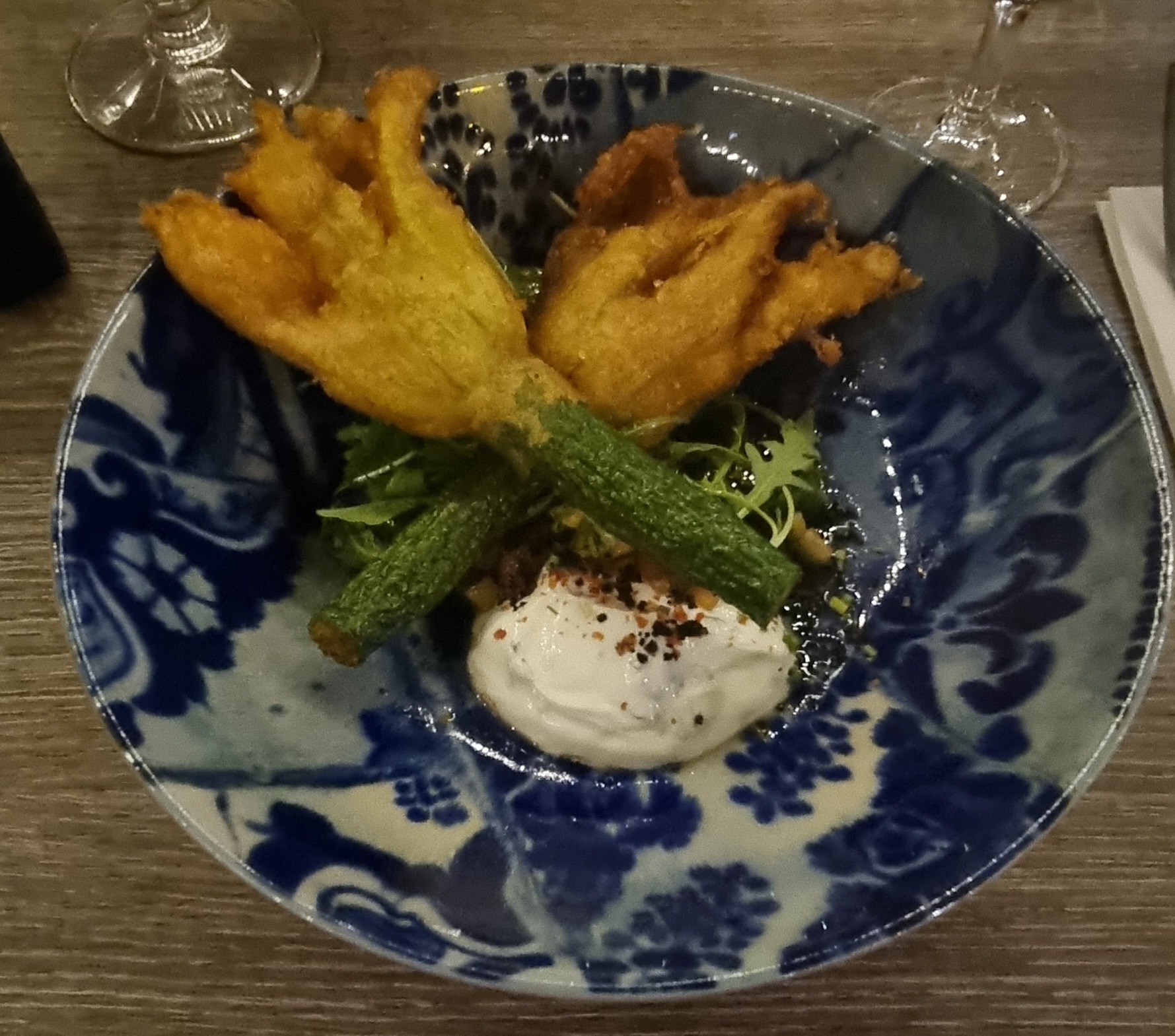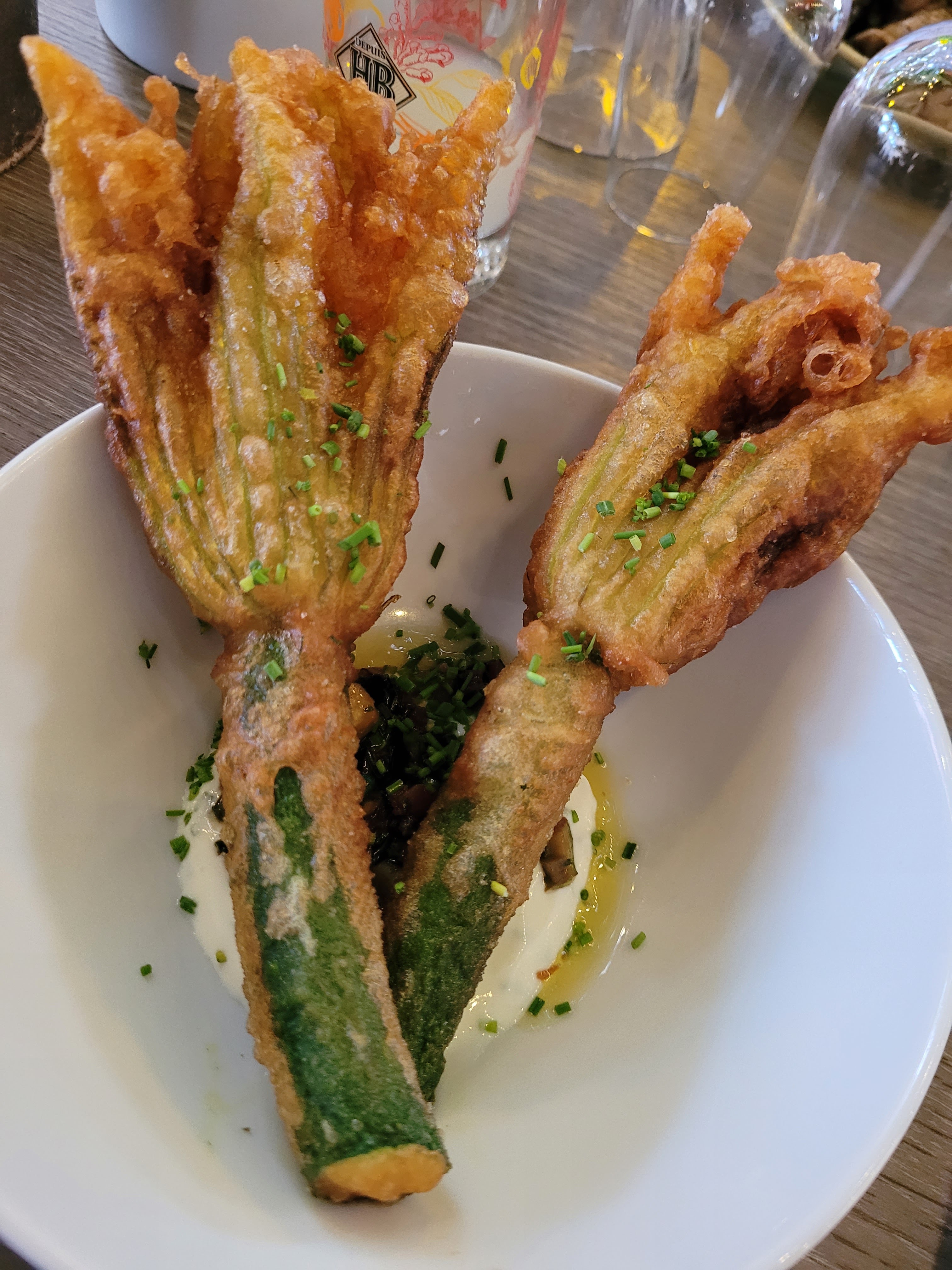 Nous avions bien réservé pour 20h, contrairement à la réponse du propriétaire (4 personnes/bénédicte) et sommes arrivés à 19.30... Nous n'avions pas réservé pour un service rapide mais une réservation normale.....Le fait d'arriver avant n'oblige pas à devoir tout avaler en vitesse pour que vous puissiez faire tourner la table.... En tout cas on avait réservé... Belles assiettes, gros coup de cœur pour les fleurs de courgettes. Petit bémol pour le service…. Beaucoup trop rapide, qq minutes après l’apéro on reçoit l’entrée. Et le reste a suivi au pas de charge…. A propos de l’apéro… déception sur les propositions…et surtout l’amabilité du serveur….quand on a proposé de prendre l’apéro souhaité au bar à côté…et de le boire à table…Sur le fonds on peut comprendre que l'on refuse....mais il y a la façon de répondre. Un des convives ne boit que du whisky et non...rien d'autre....alors les commentaires secs du serveur n'étaient pas nécessaires... Bref, oui mais… pas waouh… Compte tenu de la réponse du propriétaire qui nous fait la leçon en prétendant que l'on avait pas réservé (ce qui est faux)...on passera notre tour et on ira à coté....où on est aimable....