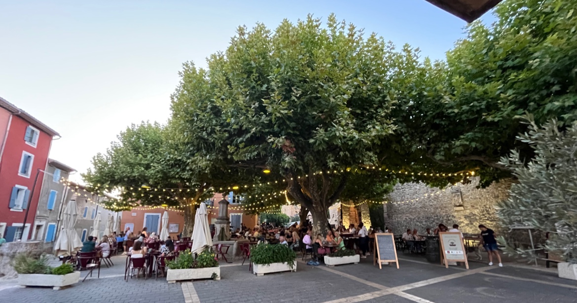 Le cadre est incroyable ces beaux soirs d'été sur la place sous les platanes. La cuisine est sympa et on apprécie le soin mis à privilégier les produits de la region mais ce n'est renversant non plus. Vin au verre, ce soir la, un seul (non) choix, le rouge de la coopérative, sympa mais il est dommage de ne pouvoir profiter des belles productions de la région.