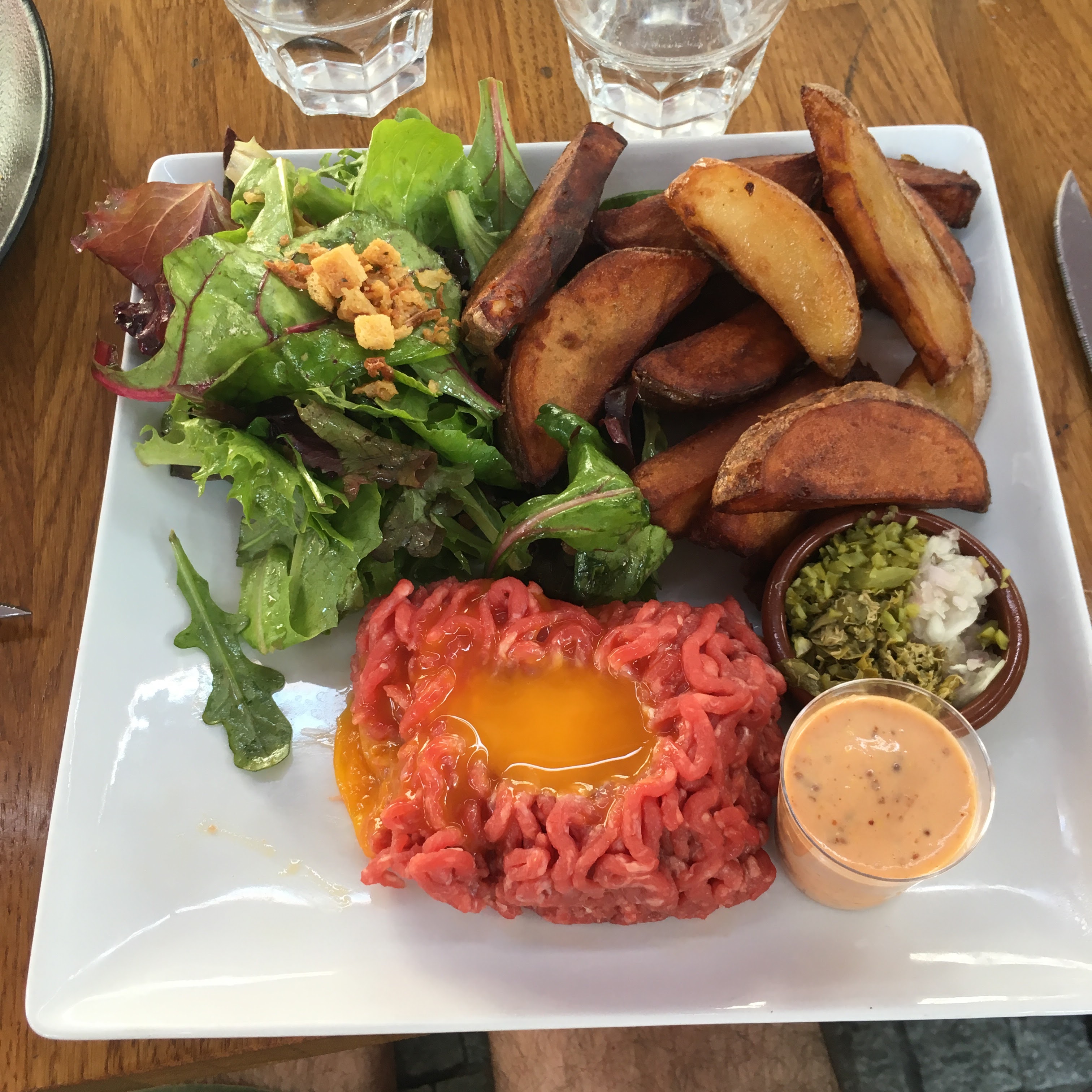 Beau restaurant sur la place du marché des chartrons. Venu manger avec des collègues. Service rapide et sympa. Serveuses au top. Entrée feuilleté serrano et pièce du boucher /frites. Bien assaisonné. Bien mangé. Prix correct. À refaire.