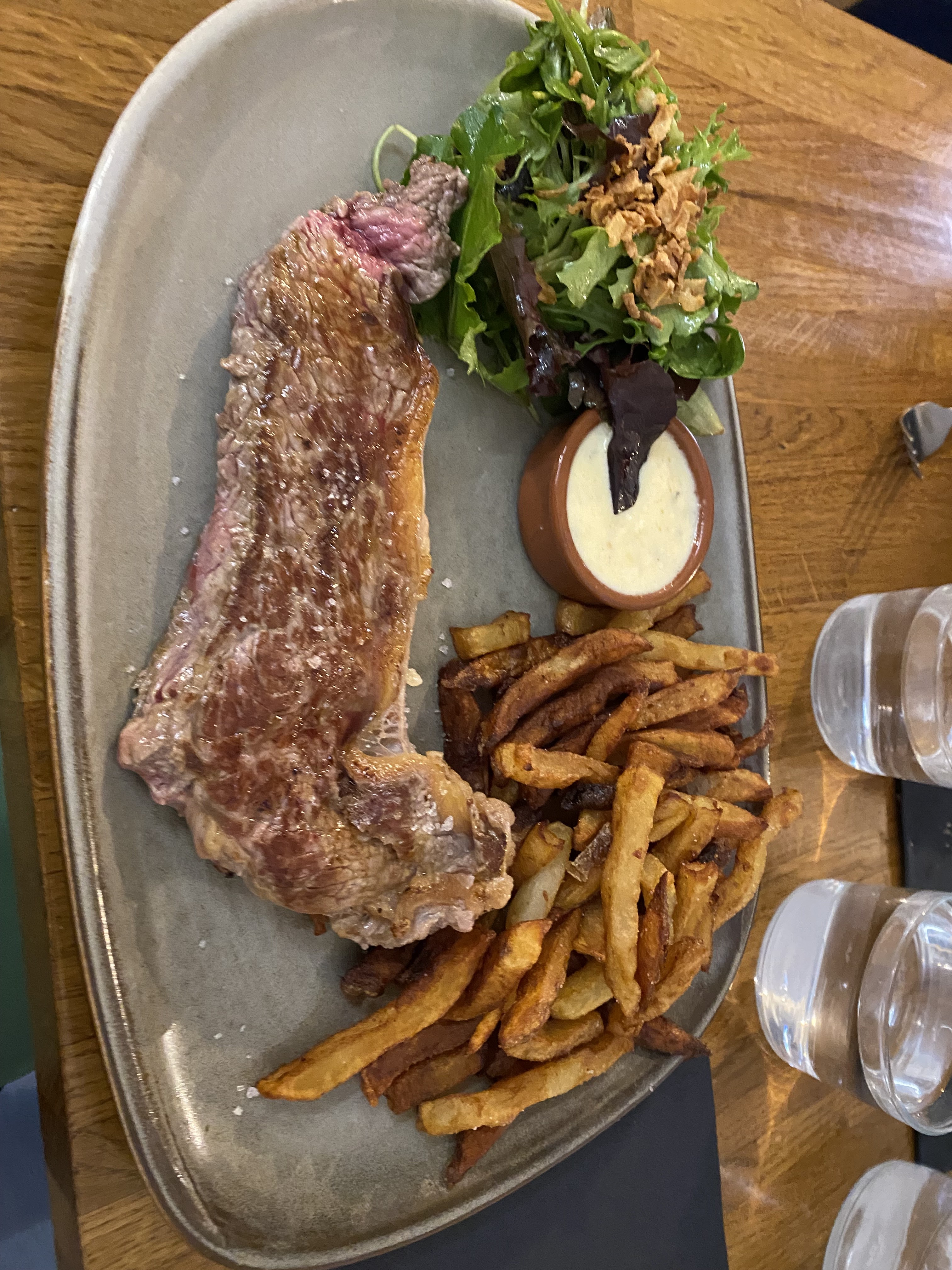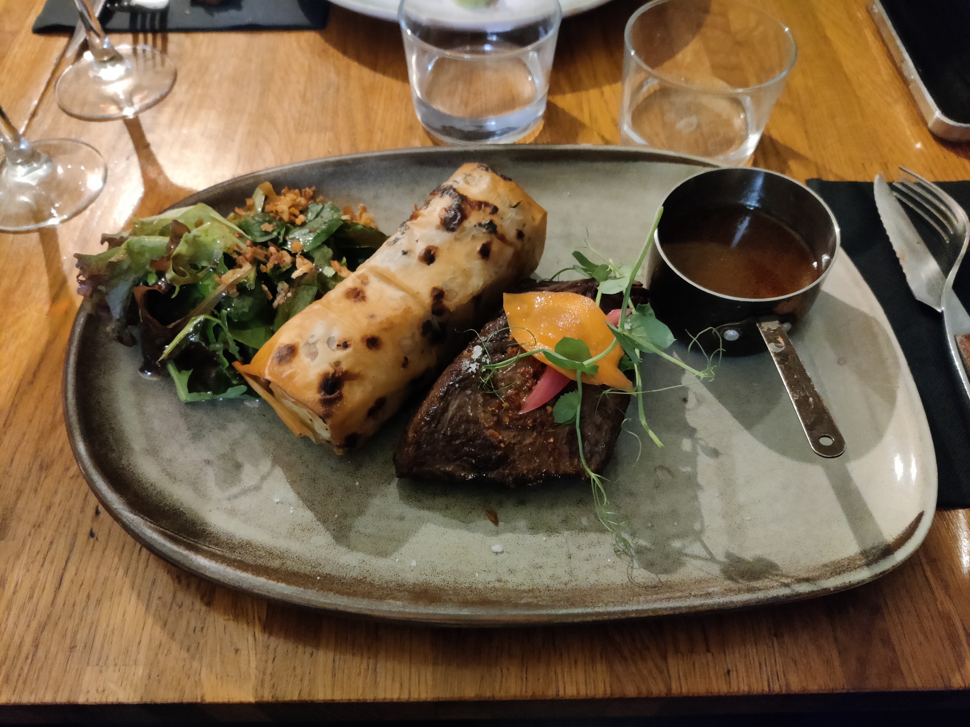 Je me suis régalé ! Je vous recommande la pièce du boucher avec sa sauce incroyable et son gratin de pomme de terre feuilleté.Sûrement un des meilleurs plats jamais mangé dans un restaurant ! Le service (Alan et sa collègue) sont géniaux. Professionnels, rapides et très sympas. Merci encore pour cette belle soirée passée mardi soir !