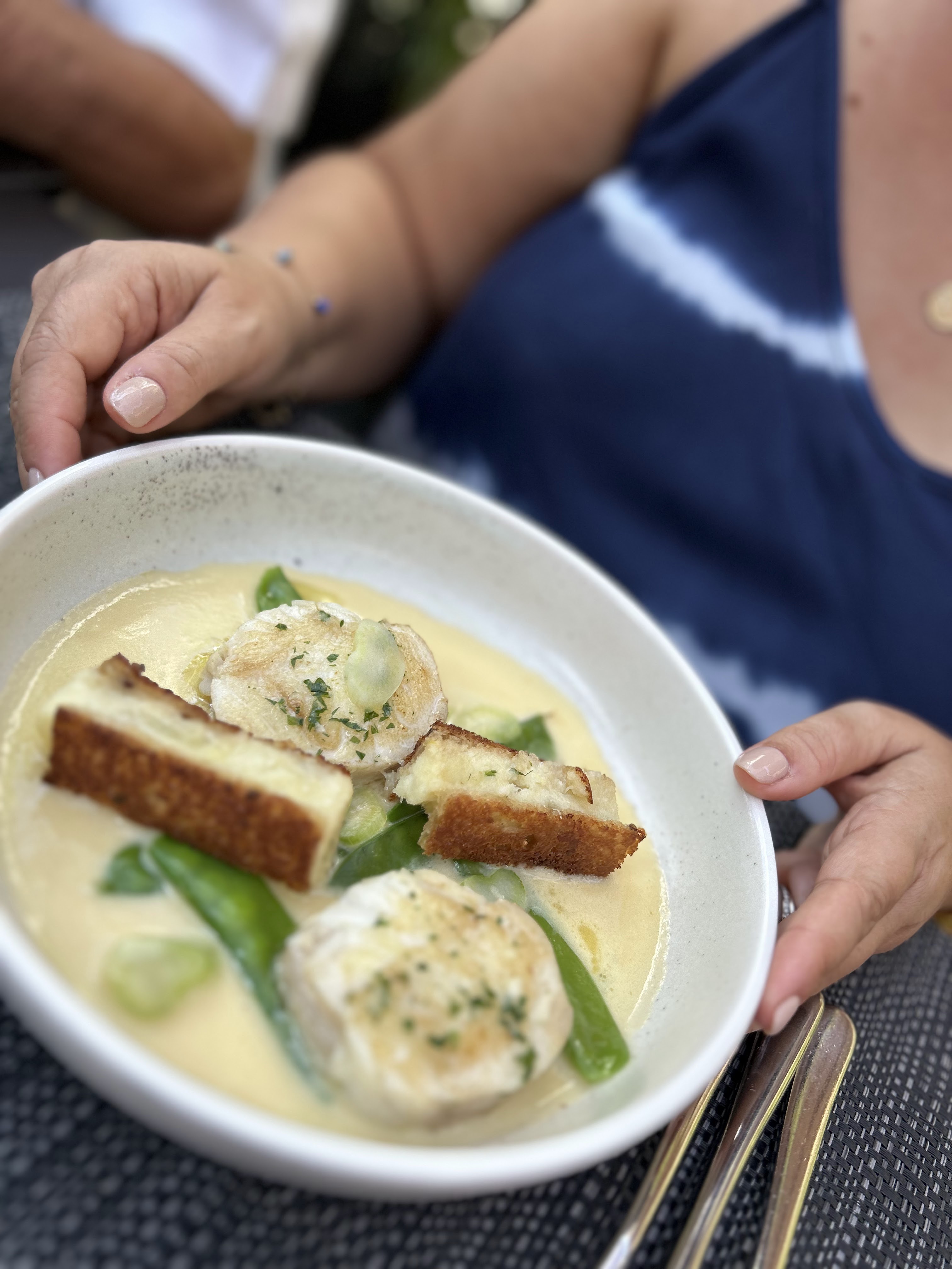 Invitée pour un anniversaire, la cuisine est excellente Je conseille en entrée velouté de cèpes au foie gras (divin) Et le croc-cabillaud très fin Très bon champagne Le service est parfait, discret rapide, pas d'attente Grand parking J'y retournerai