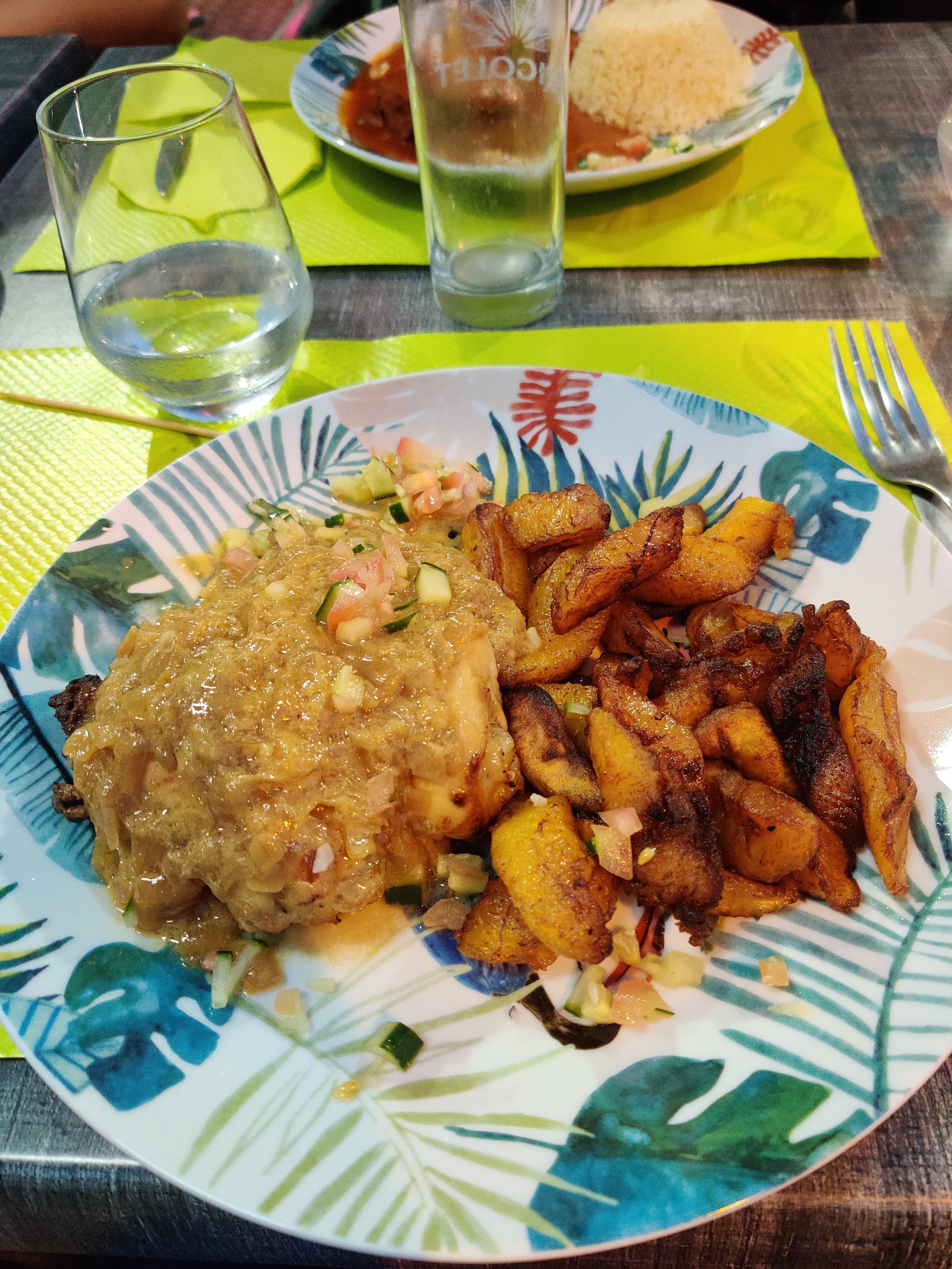 Un repas goûteux dont j’ai trouvé le prix trop excessif pour ce qu’il présente en quantités. Il aurait été souhaitable qu’ il y eut plus de contenu sans forcément devoir prendre un supplément alocos ou atiéké à 5€ la portion.... J’ai mangé la même chose ailleurs aussi bon pour 2 fois moins cher😳 Je ne reviendrai pas car je ne sais pas si ce que j’ai mangé vaut vraiment son prix , et je n’aime pas partir d’un restau avec une impression que ce que jai payé est disproportionné par rapport à ce que j’ai mangé. Bonne continuation