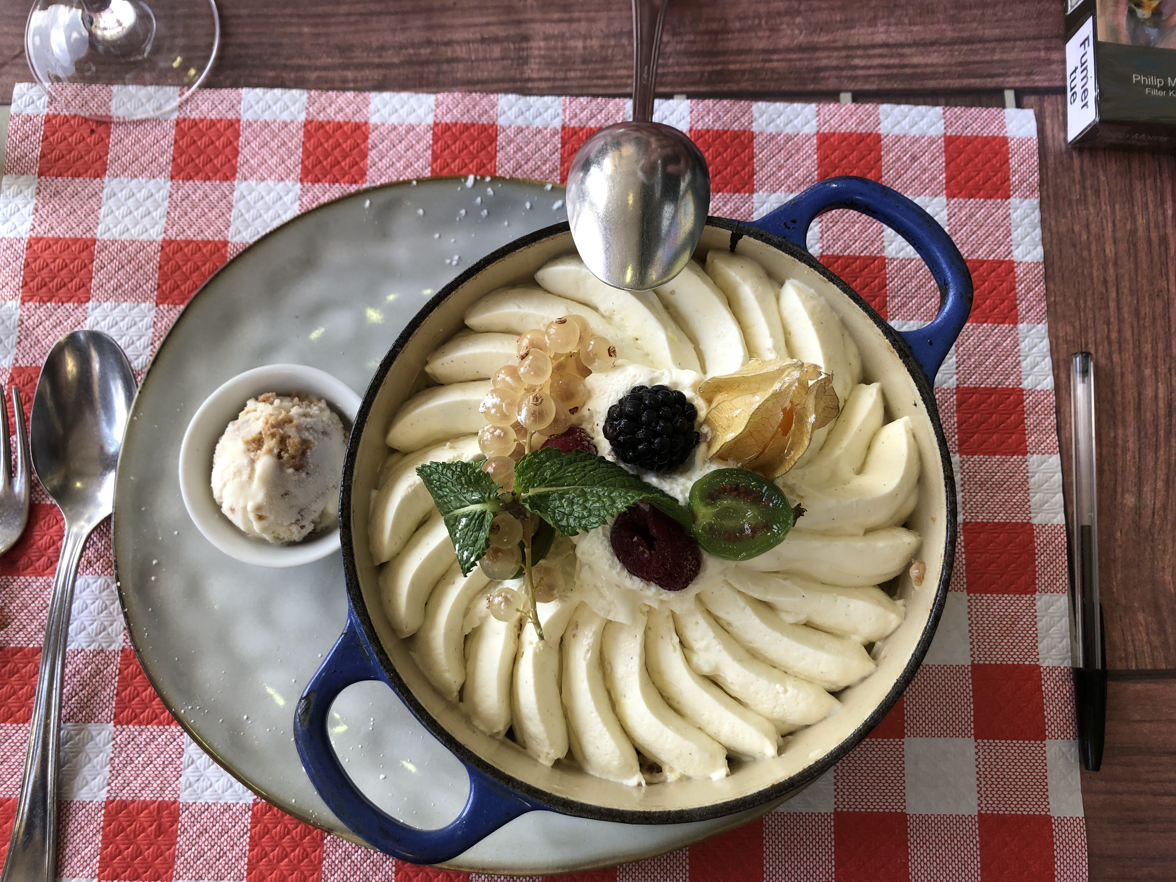 Dîner en famille, en semaine. Plats appétissants, copieux, spécialités de poissons frais. Lâchez-vous sur le baba au rhum en cocotte pour 2. Une tuerie.