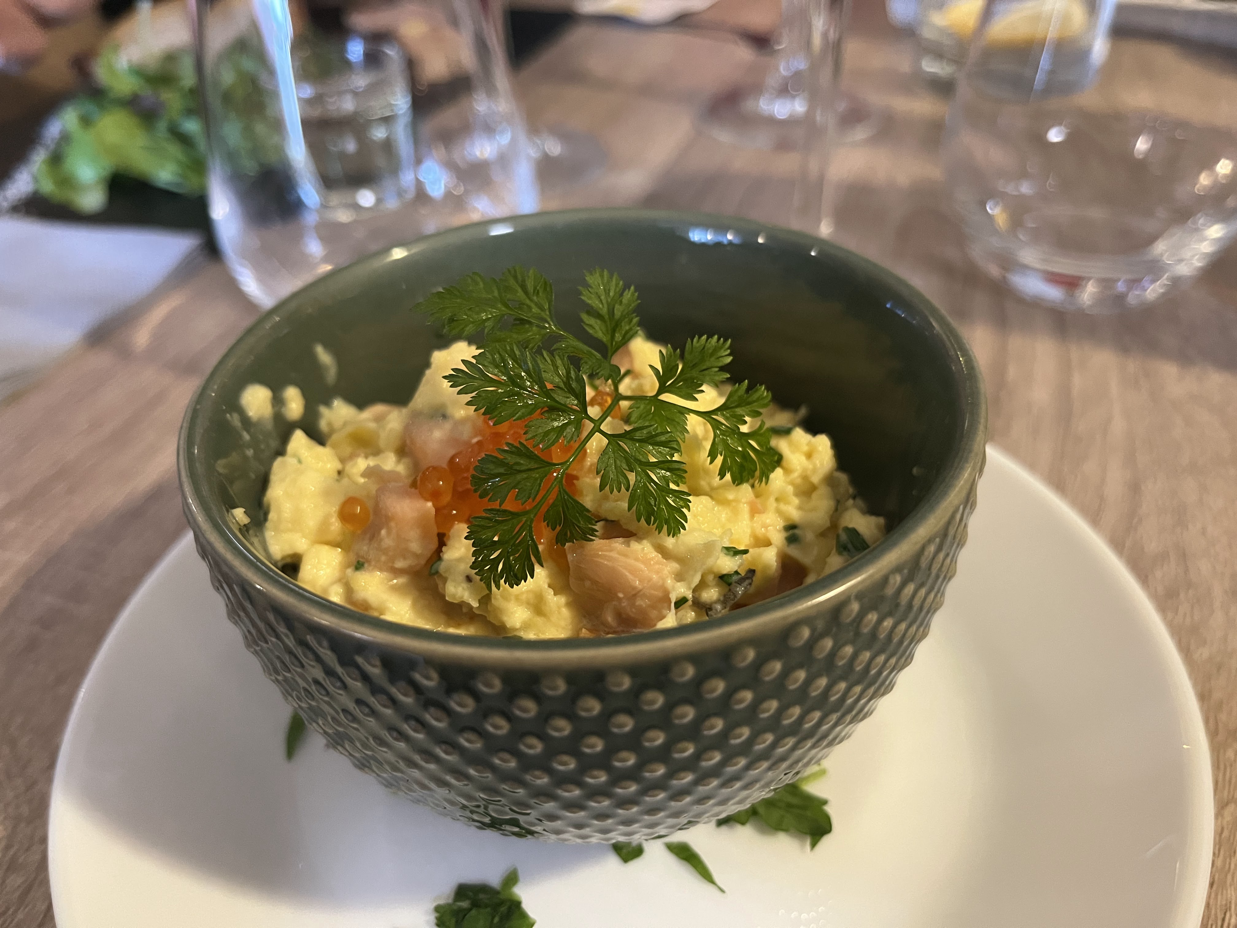 Déjeuner. En mars. Le personnel est agréable mais la cuisine est très ordinaire. Déçus.