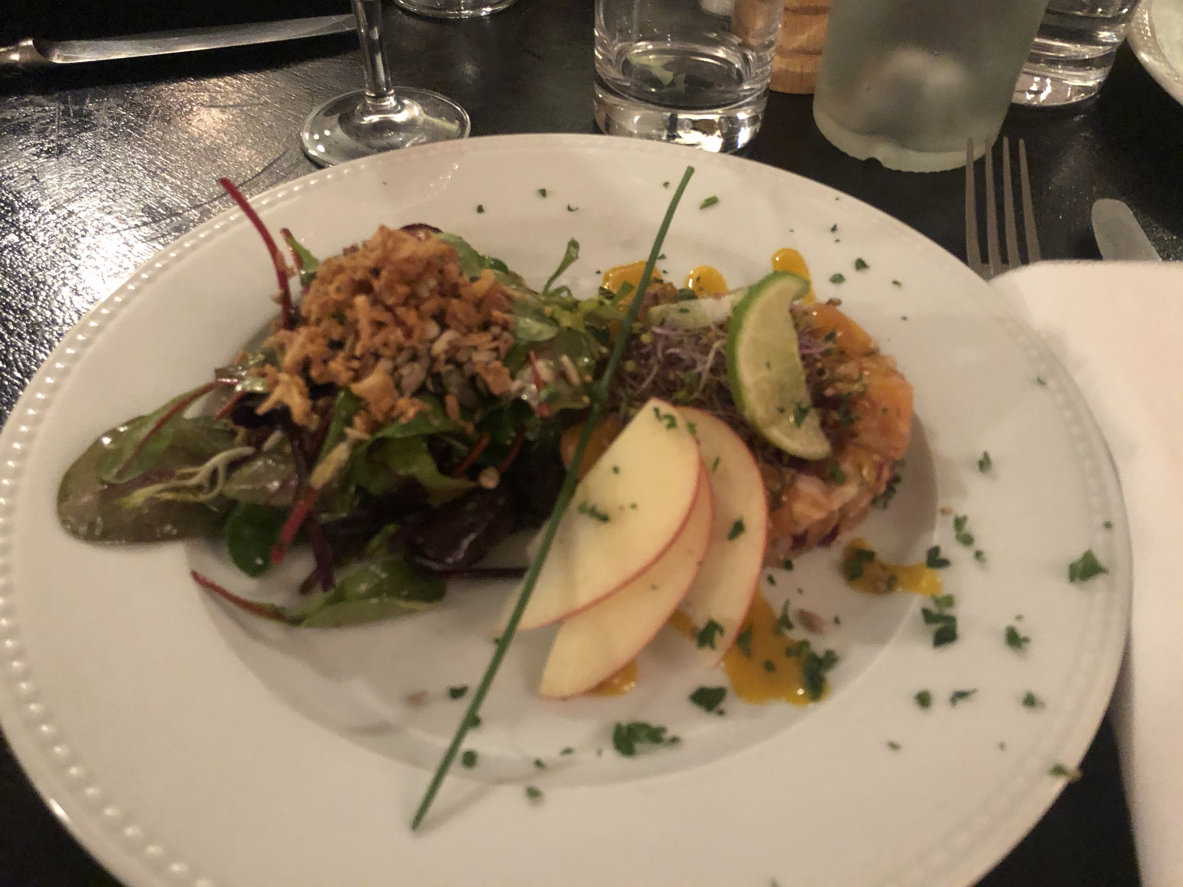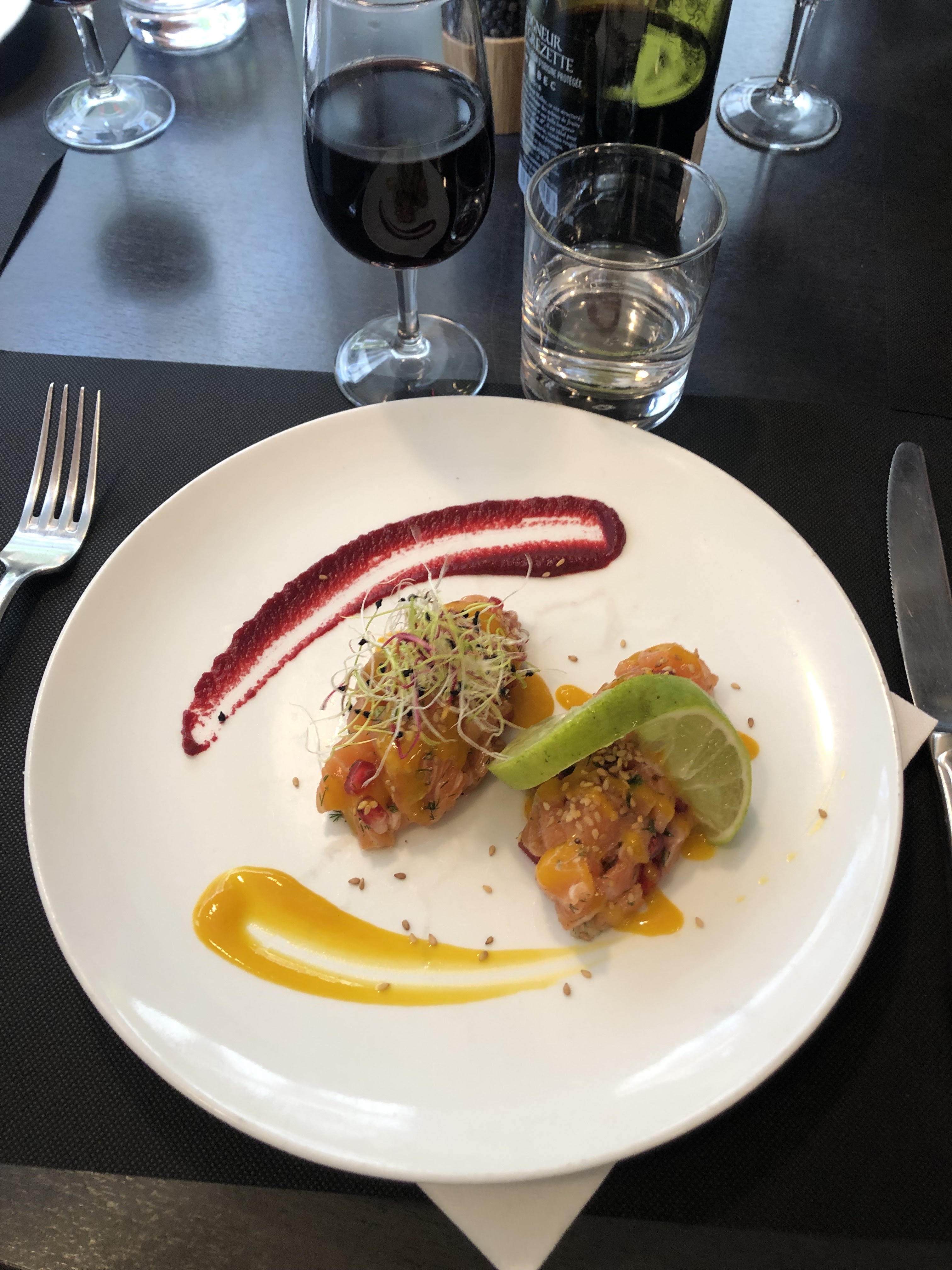 Le tartare de saumon est excellent. Le veau beaucoup trop salé. Le vin était bon. Le service sympathique mais beaucoup, beaucoup trop lent... Il fallait se manifester pour ne pas être oublié.