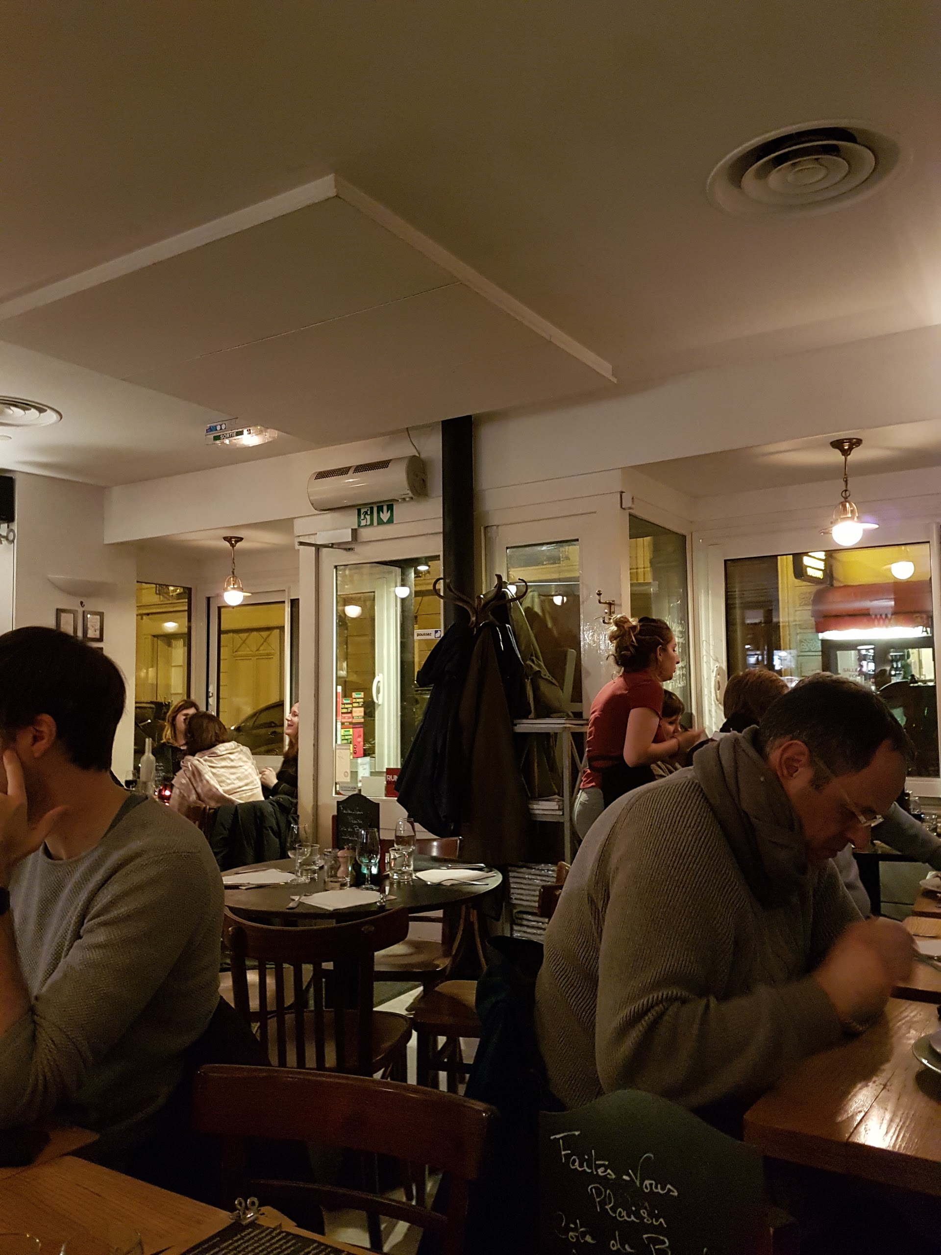 Quartier très animé mais le resto est situé dans une petite rue calme un peu retirée du grand boulevard. Accueil vraiment sympathique, c'est d'ailleurs le point fort du restaurant. Le soir, menu à 25 euros pour entrée + plat ou plat + dessert. Entrée très bonne (Saint Marcellin fondant et légumes) et plat un peu plus décevant (pavé de bœuf pas très tendre et sauce au poivre manquant un peu de goût). Très bonne soirée!