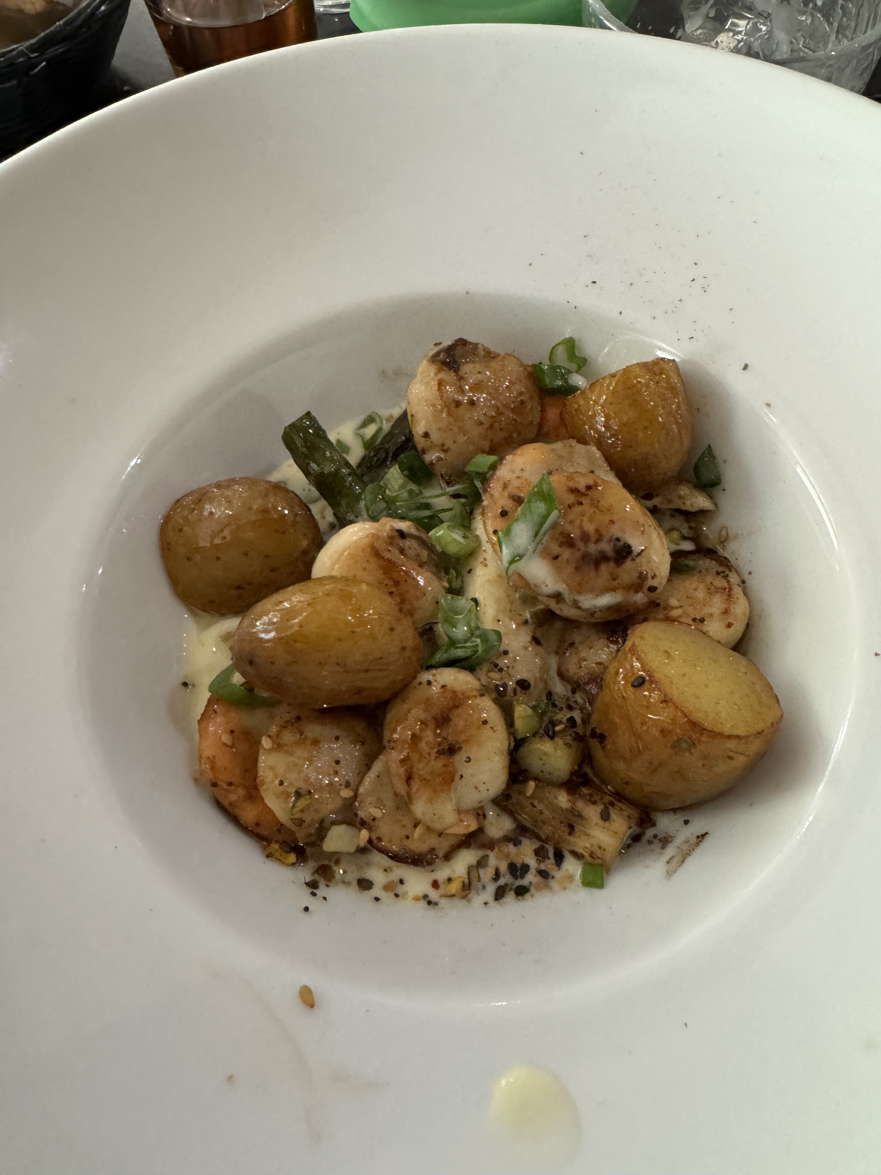 Du lard dans une brochette aux Saint -Jacques ... et bien évidemment ce n’est pas précisé sur la carte. Le morceau de lard était coincé entre les Saint Jacques, dans une sauce à la crème, on aurait dit du thon.. c’est un scandale car je ne mange pas de porc ... j’étais dégoûtée. Lorsque nous avertissons le serveur il nous dit que ce n’est pas la première fois et qu’ils mettent régulièrement du lard ou du jambon dans des plats aux poissons (sans le mentionner sur la carte) .. Mécontents nous en parlons au patron qui nous dit « et alors ? oui on met du lard et alors ? » .... En 2020 ne pas être inclusif à ce point c’est choquant. Par ailleurs, outre les convictions il y a aussi des personnes qui sont allergiques donc c’est très dangereux !! Vraiment dommage car les plats sont excellents sinon