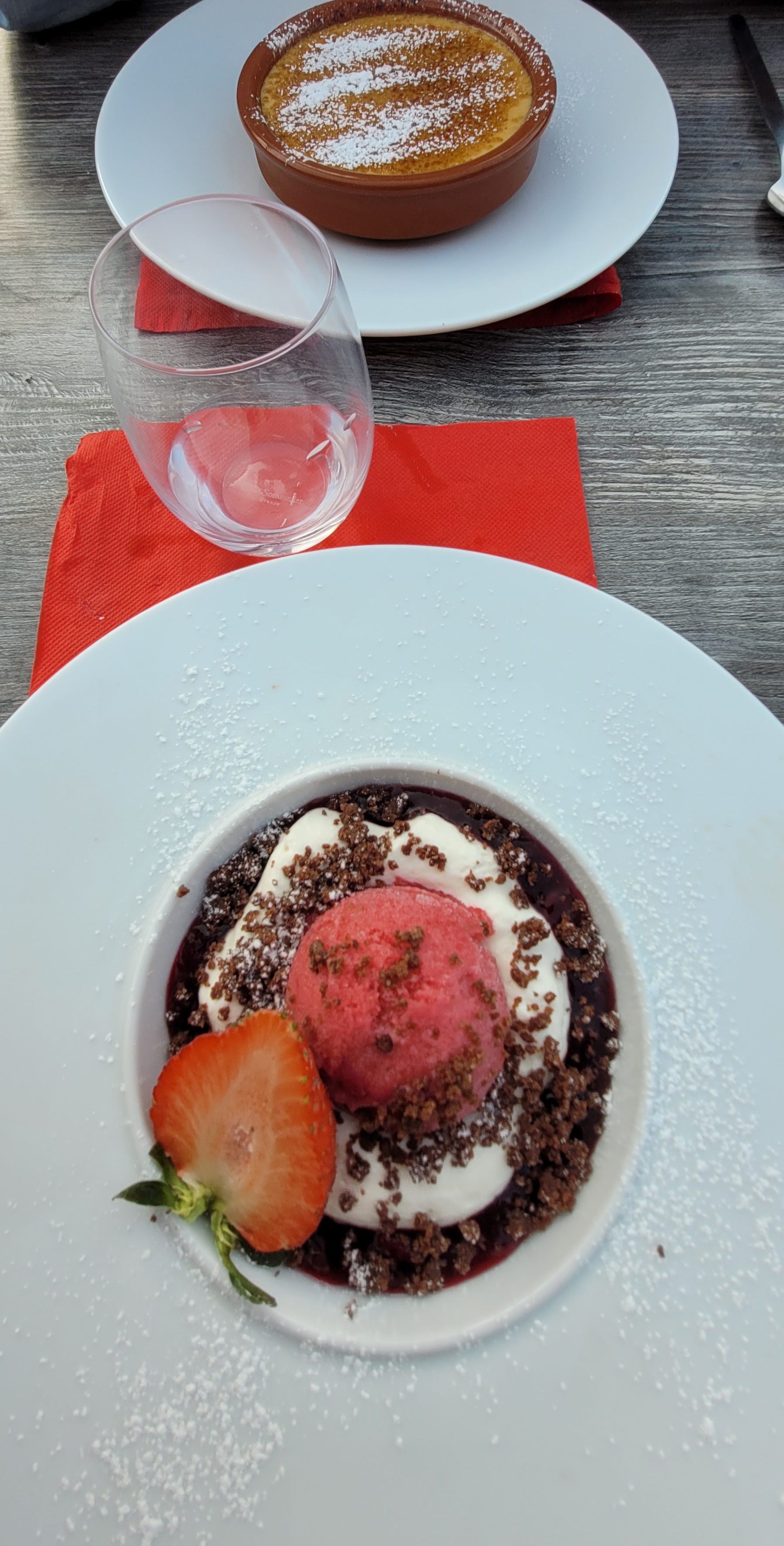 Très déçu du service...a la tombée de la nuit..on ne voit même pas ce qu'il y a dans nos assiettes manque d'éclairage sur la terrasse. Nous n'avons jamais eu nos desserts et pourtant avons attendu +++mais par contre on vous les fait payer!!!!!Vraiment très très très déçu. Nous n'en garderons vraiment pas un bon souvenir de ce repas .... Oui vous vouliez nous offrir le digestif....mais nous n'en avions pas pris ...nous n'en prenons jamais!!!quant à emporter les dessert????pourquoi ne pas nous les servir??? Vos répliques sont étranges, à notre égard,....nous avons malheureusement échangé avec d'autres clients...qui ont les même déboires...Ca ne ressemblent en rien aux années précédentes. CORDIALEMENT