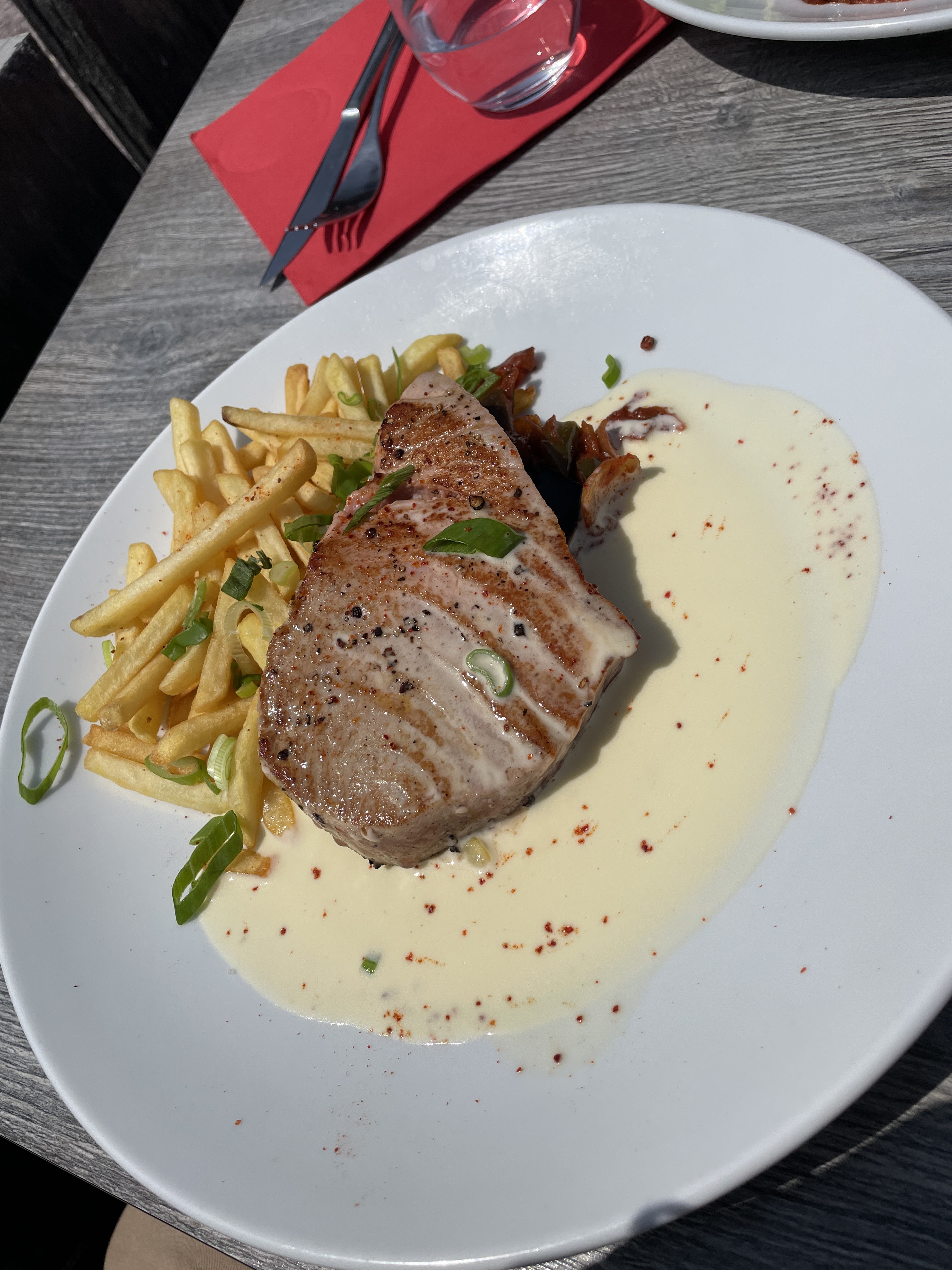 Excellentissime !!! Nous avons dégusté un repas en famille. Rare sont les menus enfants avec du poisson frais : une belle tranche de thon.... On s'est tous régalé et on est parti repu !