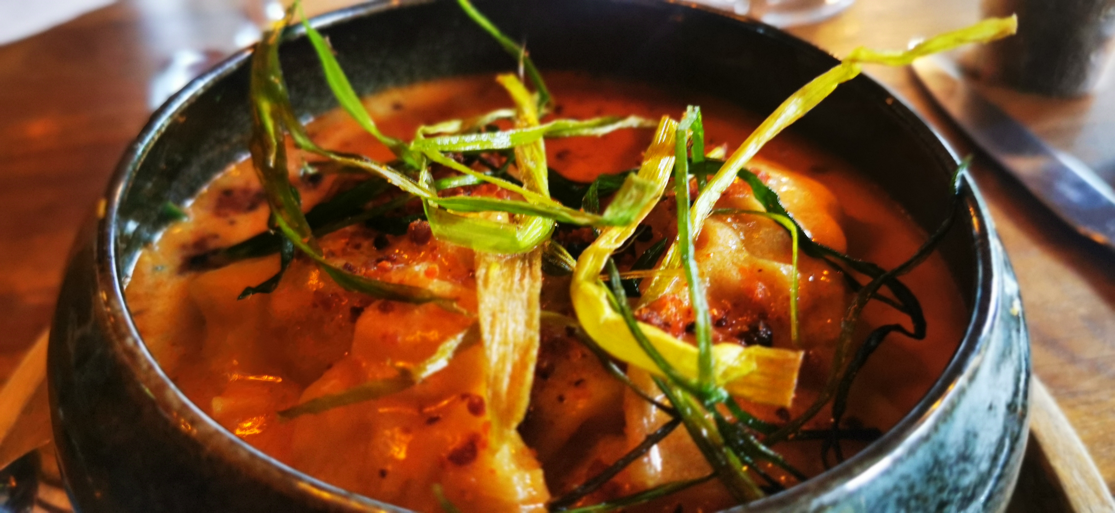 Nous sommes en train de finir notre dîner, c’est tout simplement extraordinaire ! En entrée nous avons pris des gambas et des saint Jacques : divin.. En plat principal : riz frit / pluma de cochon ibérique / shiitake: top ! La qualité des plats, le service, bref tout est parfait !! Nous recommandons sans hésiter, vous pouvez y aller les yeux fermés.