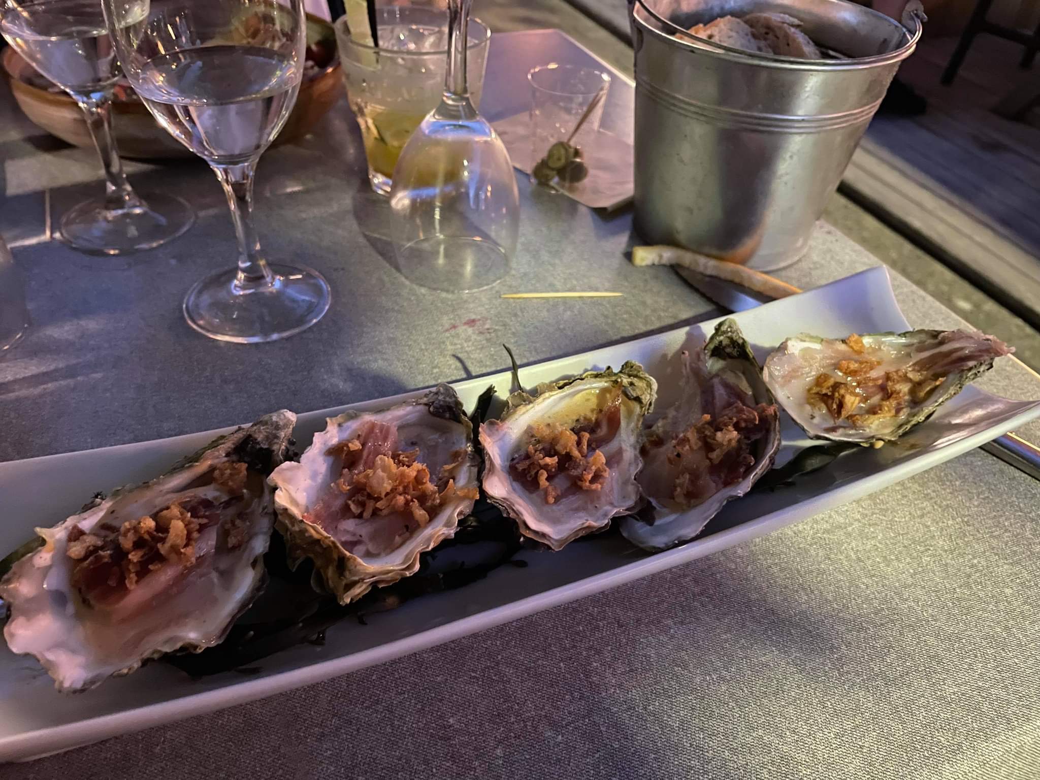 Pas de vue sur l océan mais la terrasse ombragée ainsi que l intérieur très chaleureux et accueillant nous ont beaucoup plu ...quant aux plats, c était super bon ! Que se soit les coktails, les tapas ou les plats ... Quant au dessert, le coulant d Eugénie est juste une tuerie et bien coulant 😁😁 ... Merci pour ce très agréable moment !!!
