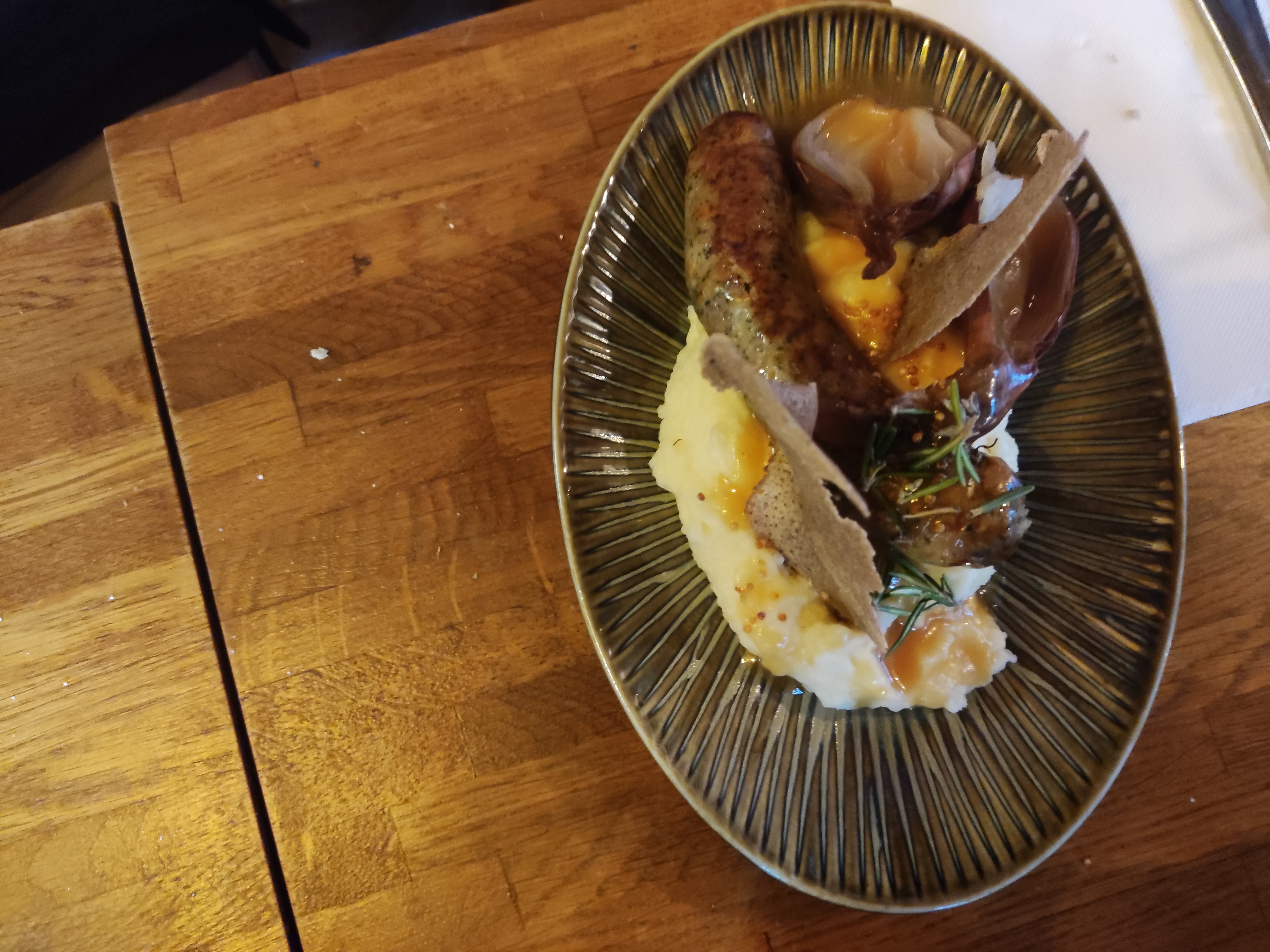 Bon et cadre agréable. Des efforts d'originalité dans le menu tout en gardant une cuisine plutôt traditionnelle et gourmande. Mon plat était très bon mais un peu écœurant à la fin car trop de crème.