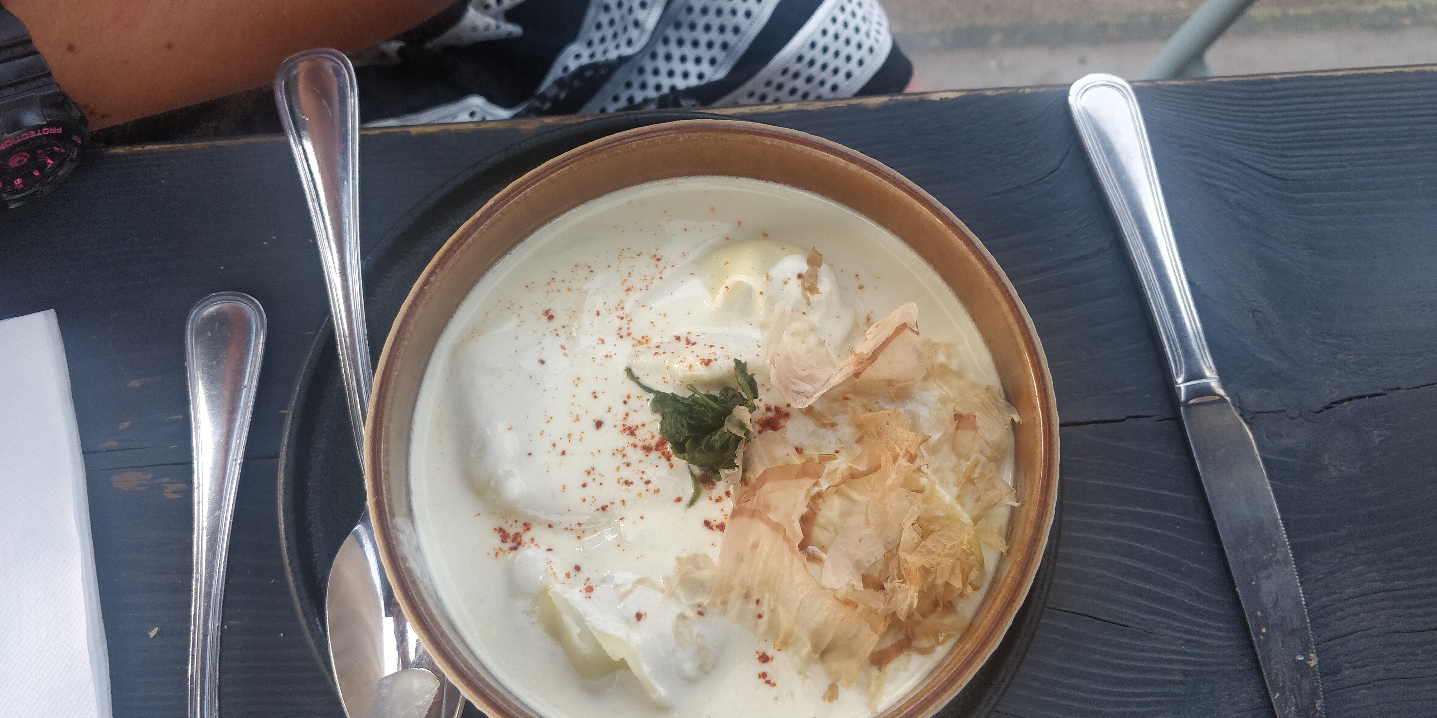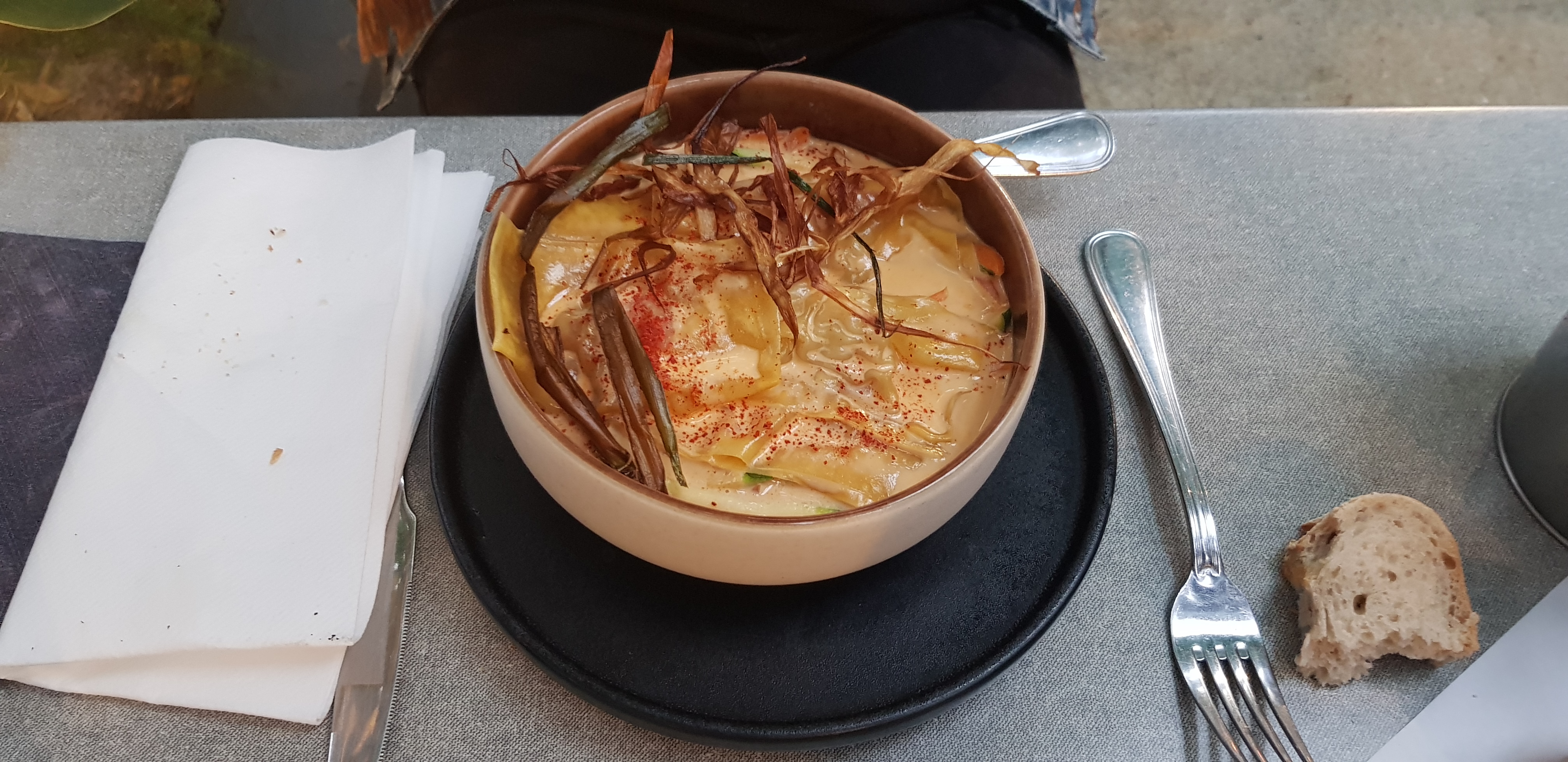 Restaurant très sympa le personnel est au top très agréable et assez rare pour être souligné . Tapas très bon . Un peu plus déçue par le plat trop de crème dommage . Mais une belle expérience