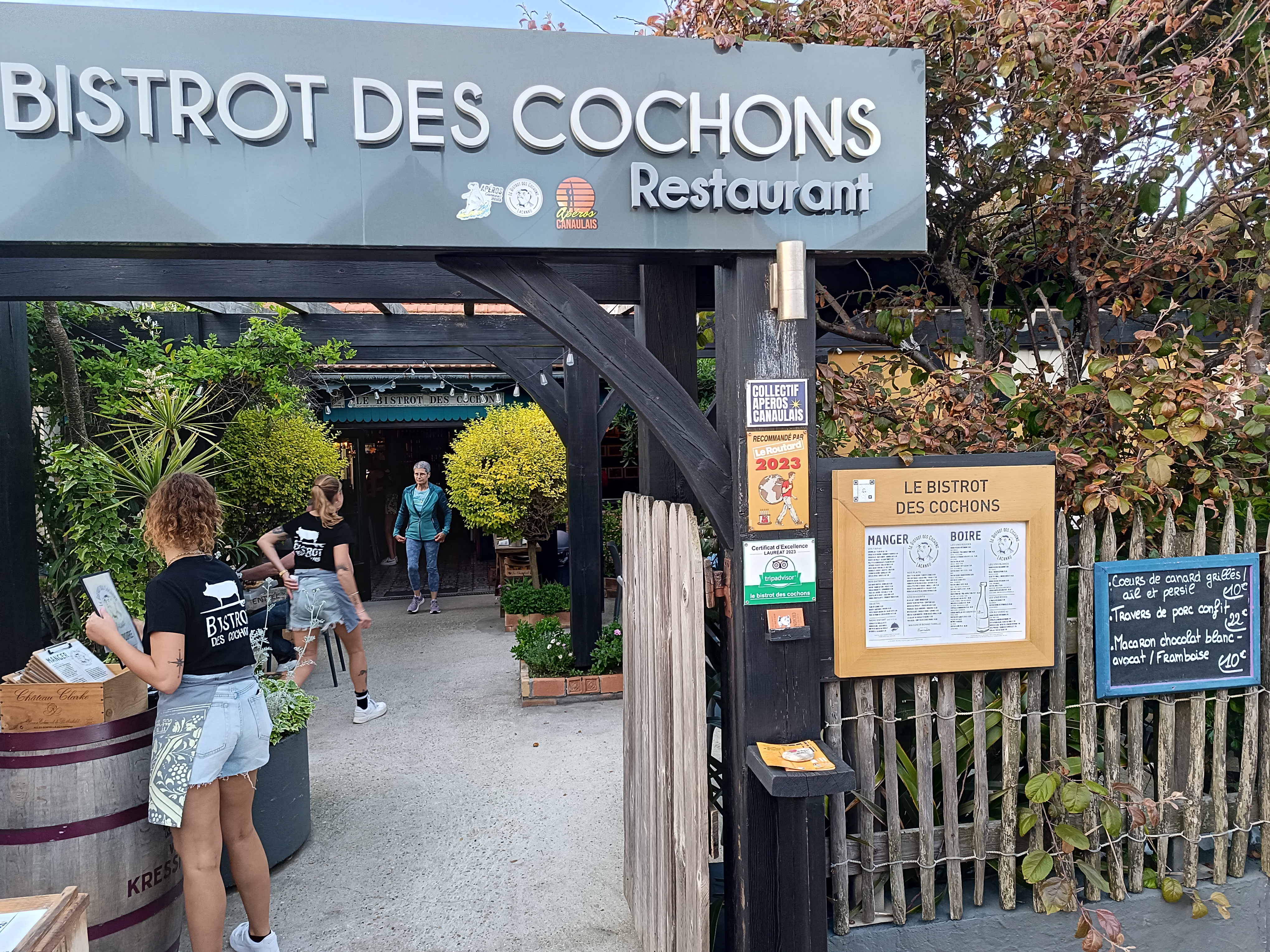 Un peu à l'écart de la rue commerçante de Lacanau, le Bistro des Cochons nous a attirés par son nom 😊. Nous cherchions un resto sympa le jour de mon anniversaire et nous avons été charmés par le côté bucolique du jardin ombragé. La cuisine est excellente, entièrement faite maison, de l'entrée au dessert. Les tarifs sont à la hauteur de la qualité des plats, mais restent raisonnables. Nous recommandons !