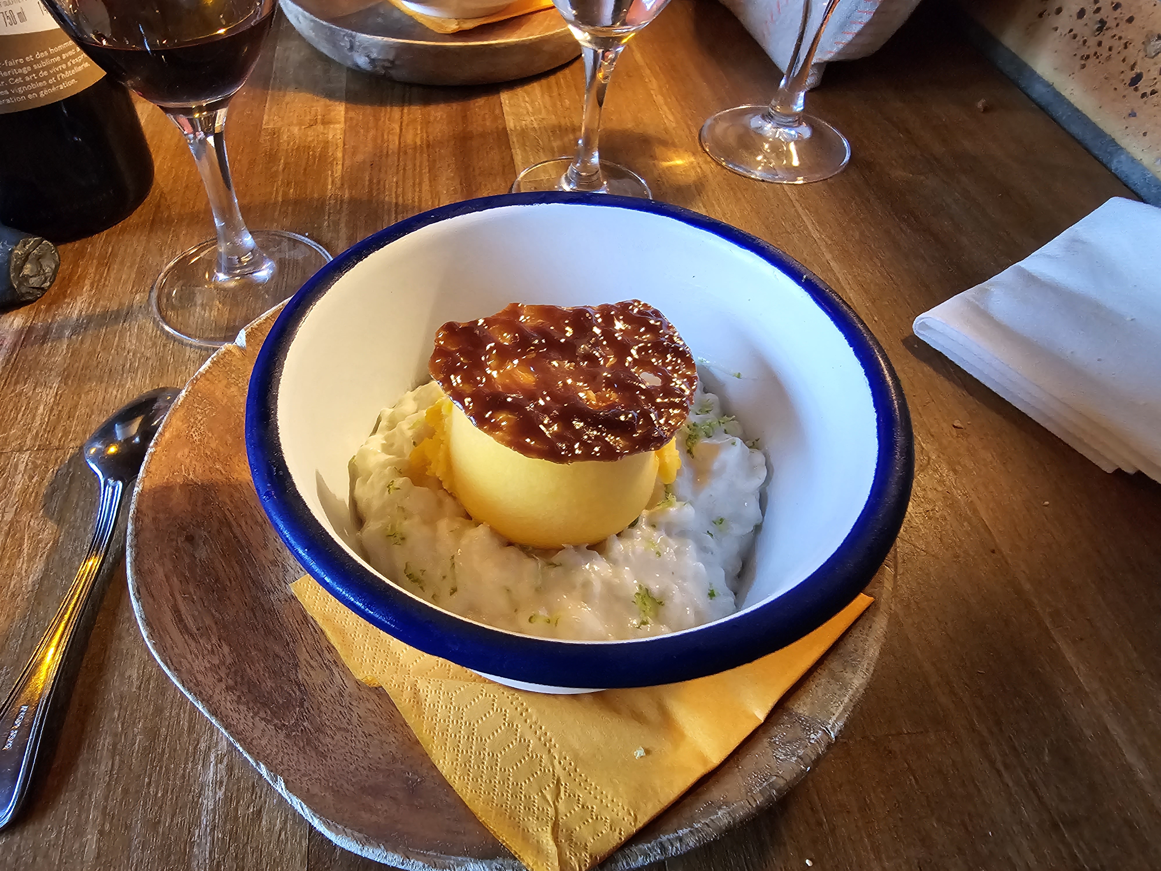 Le plat très bon mais le dessert très décevant à 9€ alors qu’il n’y a qu’un fruit de la passion et une meringue. Le service est aussi expéditif. A peine l’apéritif commencé, l’entrée arrive. Globalement une adresse intéressante mais à des prix trop élevés.