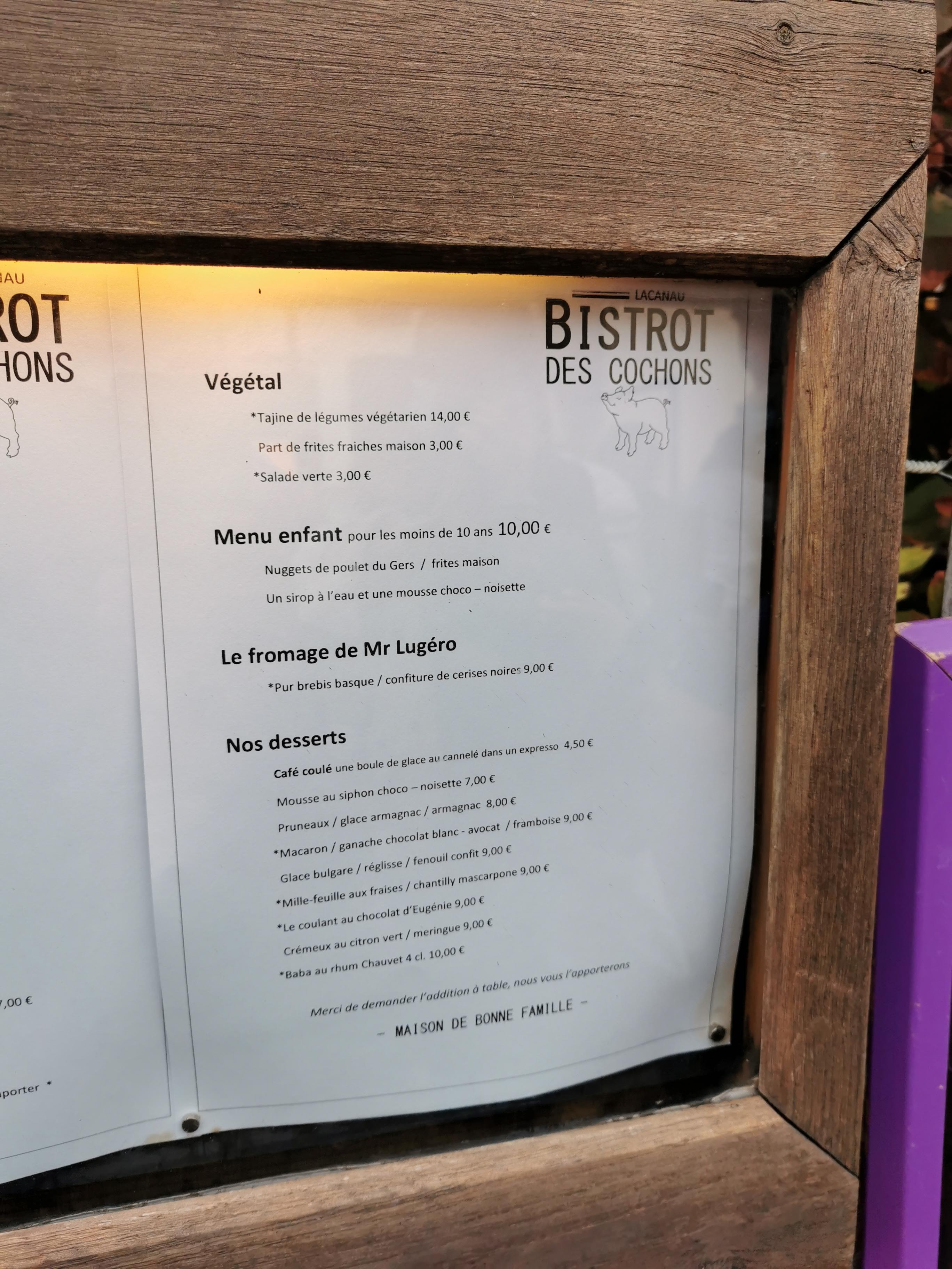 Nous sommes allés manger hier au bistrot des cochons à lacanau Océan. Très belle adresse. Nous nous sommes régalés. Menu enfant « tres bon, il paraît que les coquillettes sont meilleurs que celle de Maman… »Très bon accueil, ambiance familiale, décontracté on a adoré. Et service rapide. On reviendra tous les 4. La famille vélo ☺️