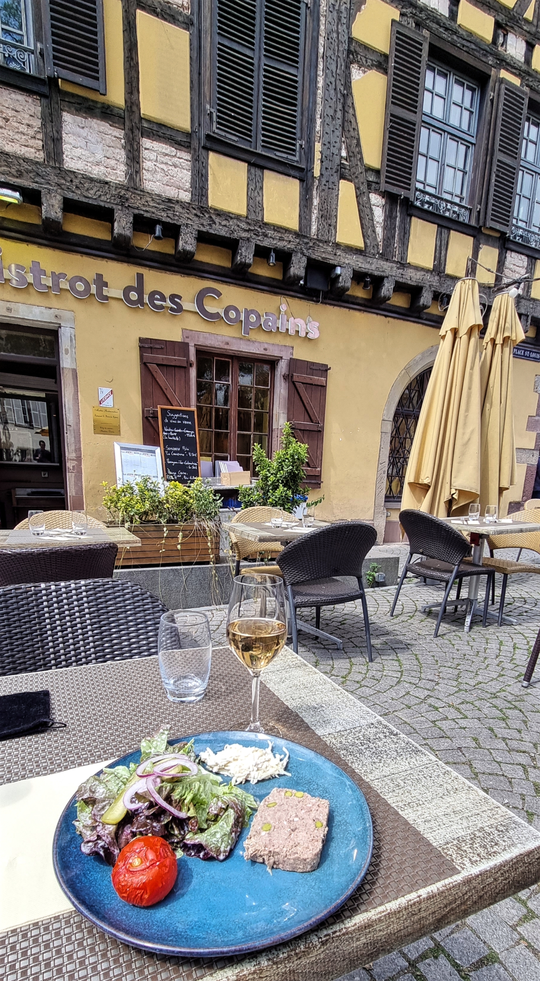 Bel endroit pour s'asseoir au soleil avec un verre froid de vin blanc d'Alsace et une tarte flambée. Délicieux.