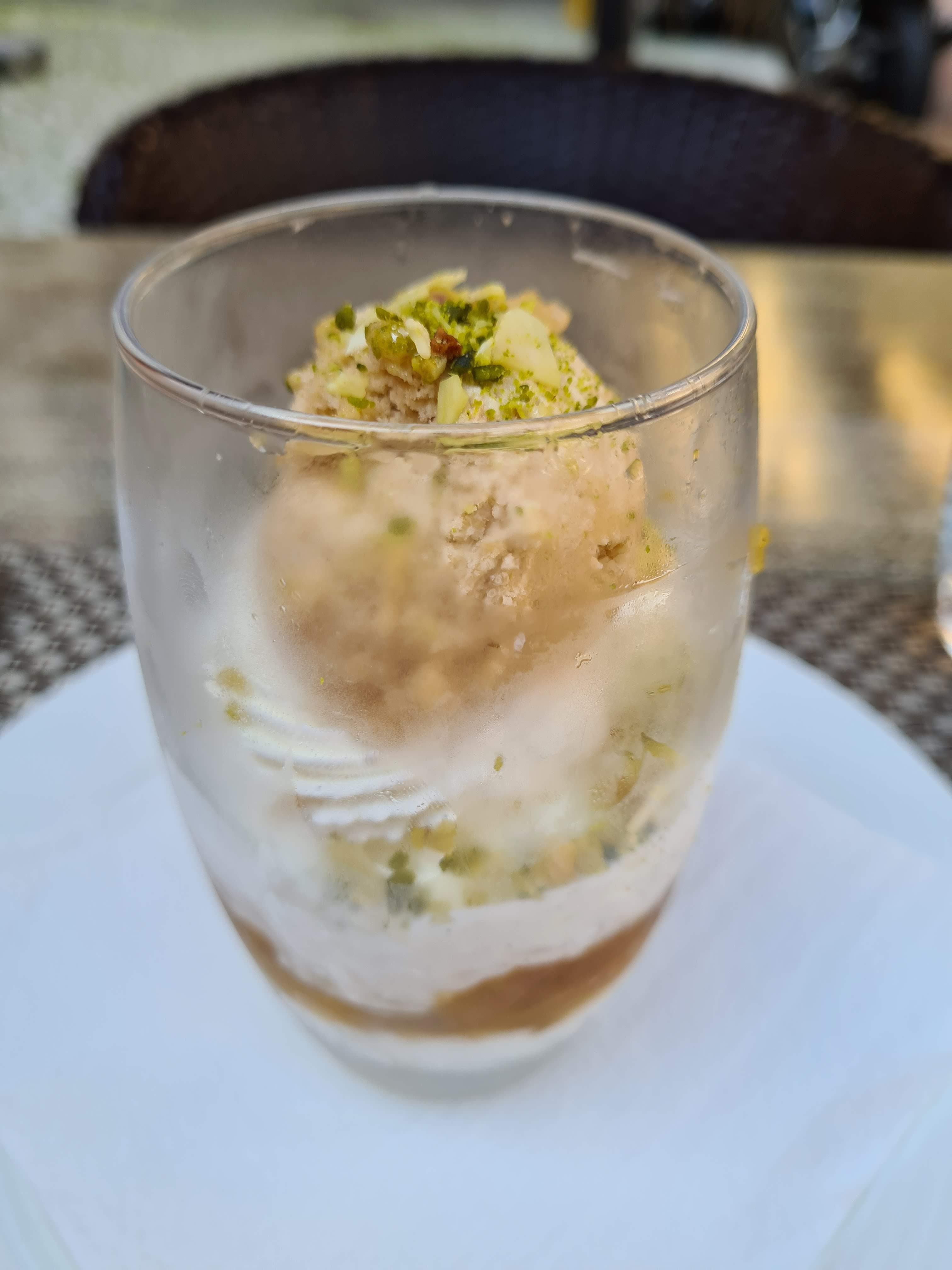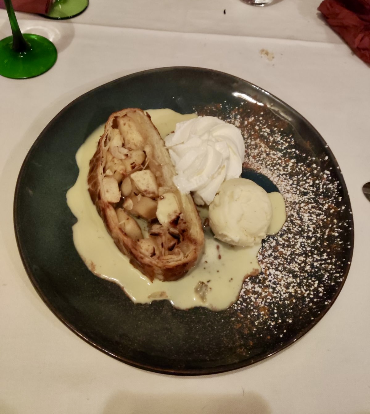 Excellent accueil et repas variés, parfois originaux, mais aussi traditionnels comme ce dessert.