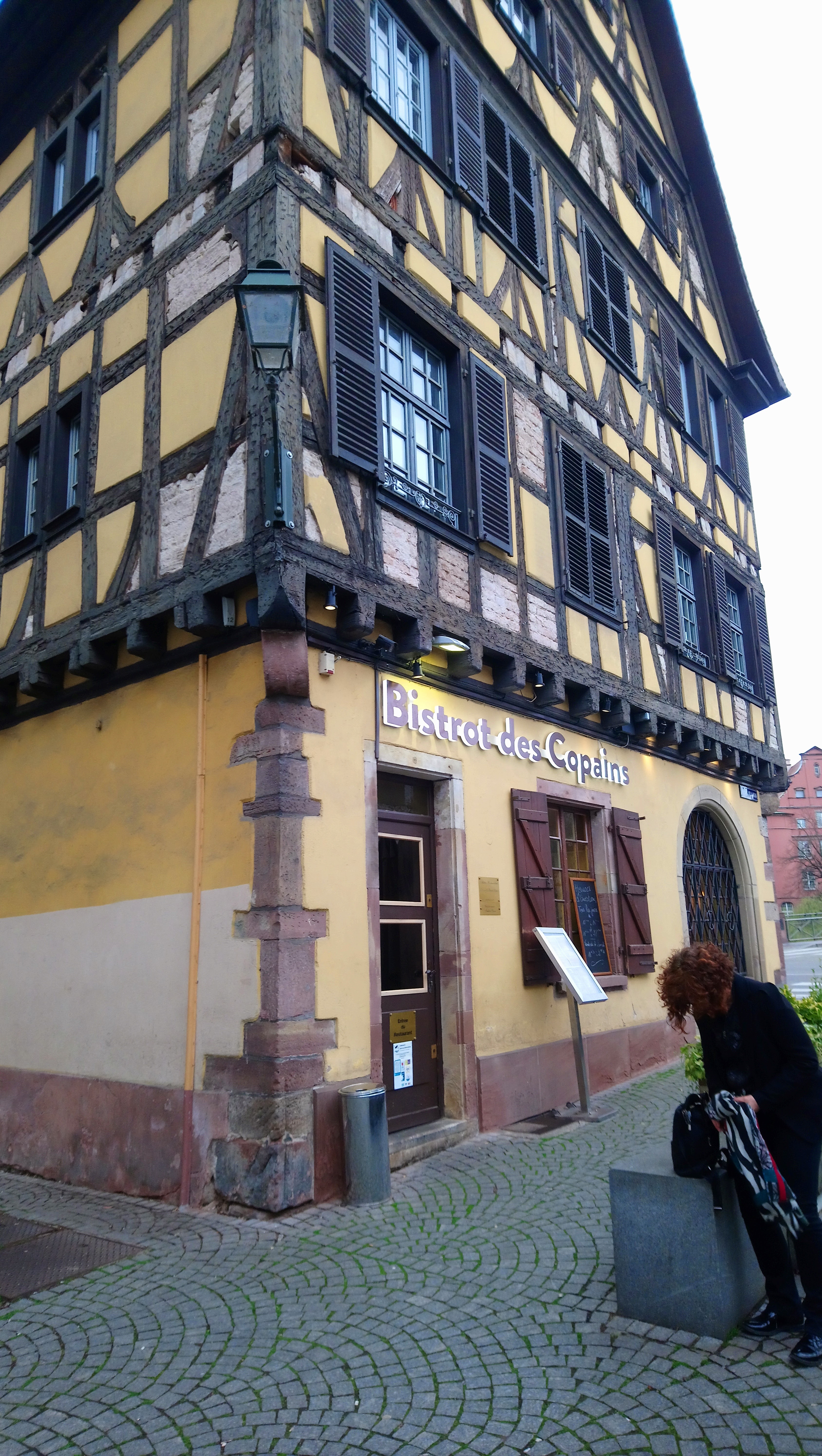Tout d’abord nous avions réservé pour le restaurant La choucrouterie car nous souhaitions manger des spécialités locales. Finalement en arrivant, on se rend compte que le restaurant est fermé et que nous allions manger au Bistrot des Copains, même numéro de téléphone, restaurant appartenant au même propriétaire et situé à côté. Déjà nous étions déçus. Puis en regardant la carte, aucun des plats proposés ne nous donnait envie. Beaucoup d’abats et gibiers. Finalement j’ai pris une salade Cesar qui n’a AUCUN intérêt. Beaucoup de salade, du poulet même pas pané, pas de lard, pas d’oeuf, pas de parmesan et la sauce vinaigrette qui ne ressemblait aucunement à la sauce à l’anchois habituellement servie dans une salade cesar. Un petit bout de tomate, quelques anchois posés par ci par là et beaucoup de croûtons … bref aucun intérêt. Service pas super agréable. Bref nous ne reviendrons pas.