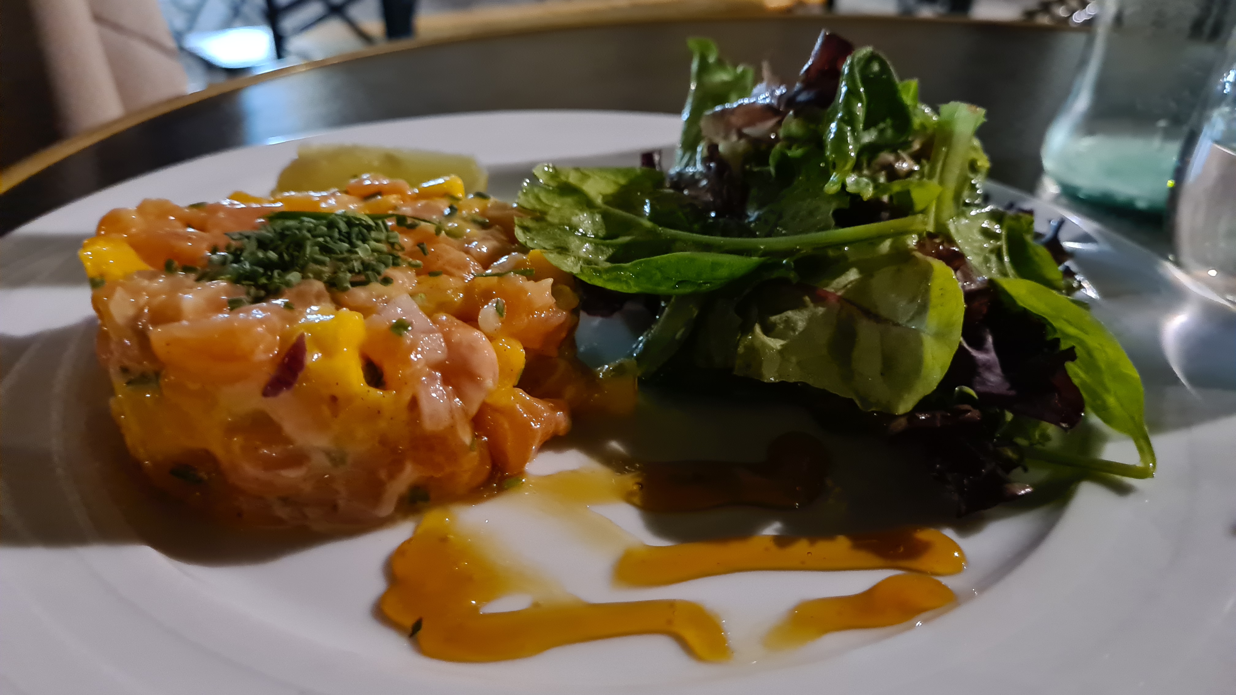 Nous étions 10 et service impeccable royal un peu cher juste pour les entrées autour de 15 euros mais je vous conseil le tartare de saumon avec un peu moins de coriandre et plus frais auraient été un plus car la coriandre très fort en bouche masque le goût du saumon, hamburger excellent il y a que le prix qui peut être trop estimer par rapport au autres restaurants au alentours ainsi qu une carte très simple pas trop de choix Cependant cela reste quant même une valeur sure les cocktails sont tops et repas très copieux donc je reviendrai sûrement et merci pour les digestifs offerts et pour votre accueil